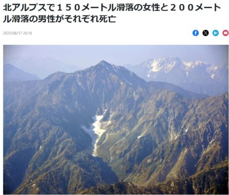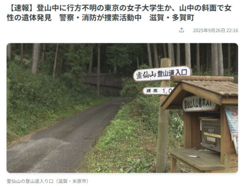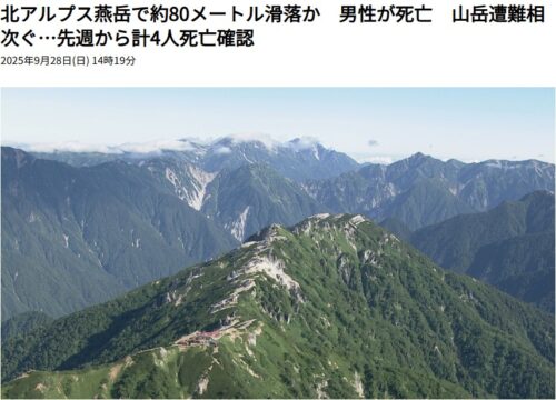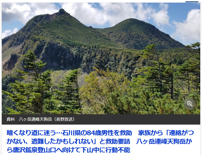っがしかし、実際9月26日に女性の単独登山者が遭難し、残念ながら亡くなられたと報じられていました。