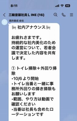 社内lLINEで若手リーダーからLINE通達がありました。