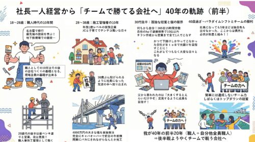 職人10年、施工管理10年、社長20年。