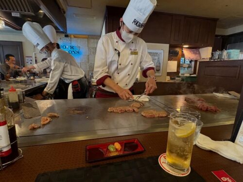 山羊汁、ソーキそば、ステーキ、そして泡盛もたくさん頂いた。