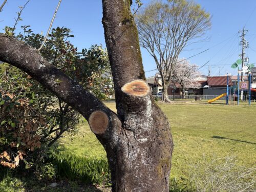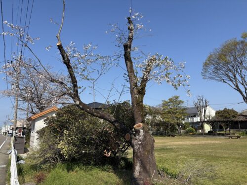 この桜は40年くらいだと思いますが、ちょっと早くに枯れが進みましたね
