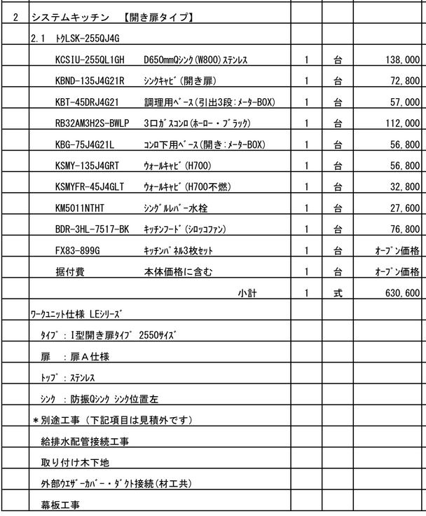 (解体処分+水道工事+電気工事+設置工事+大工工事)