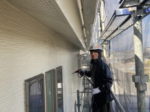 今回は塗装するため、丁寧に高圧洗浄を行います。