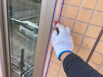 下地とシーリング材の密着性を高めるため、専用プライマーを丁寧に塗布します。