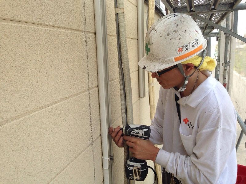 もちろんエアコン配管カバーも取り外し塗装します。あまり気にならないところまで一生懸命施工させていただきます。