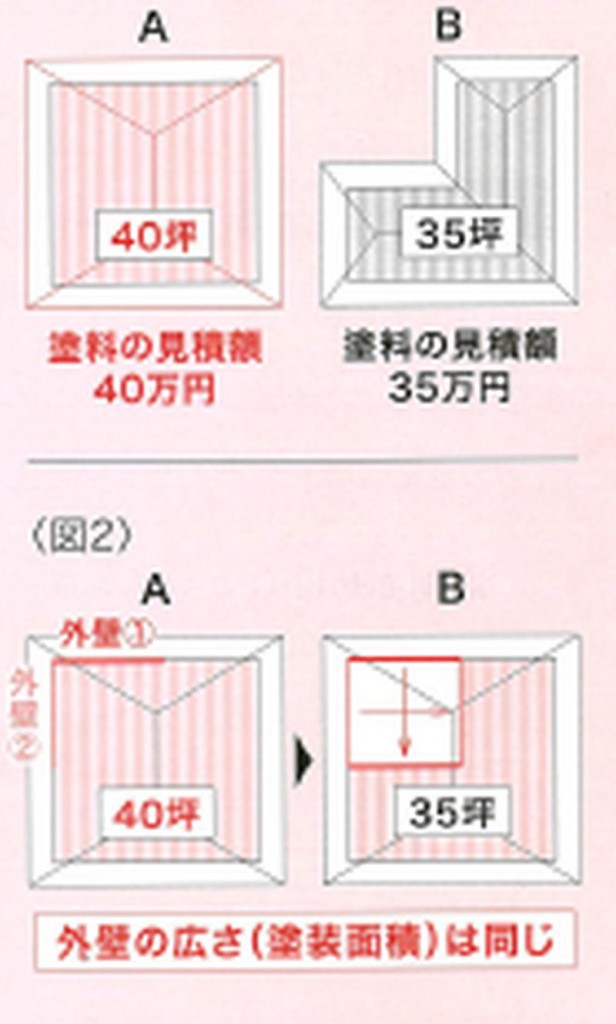 住宅の形によっては、坪数が違っても塗装面積は同じことがあるのです。