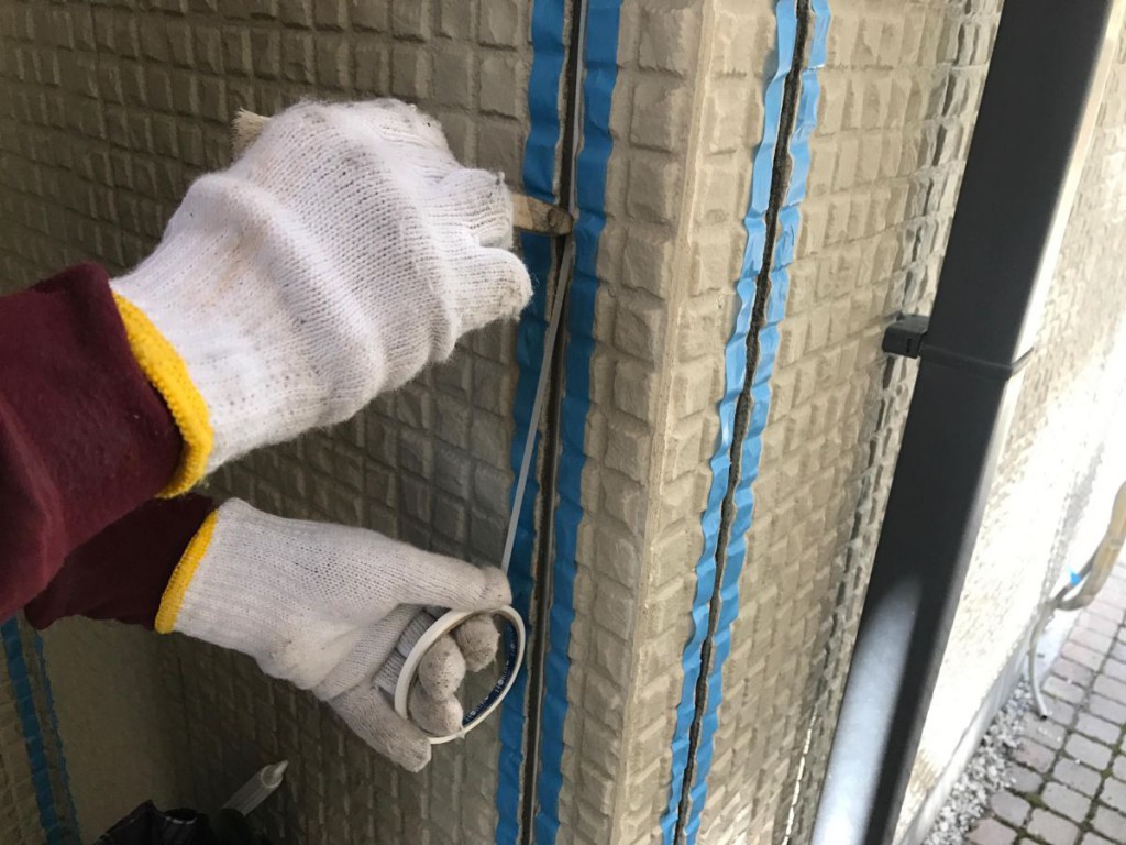 シーリングが3面接着にならないようボンドブレーカーを入れ2面接着にしていきます。