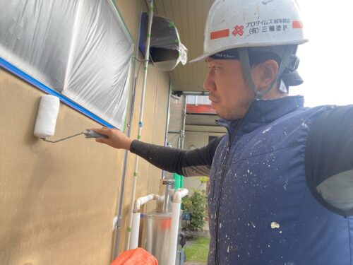 脆弱になったカラーベストの表面を固めた後、通常のシーラーを塗布していきます。