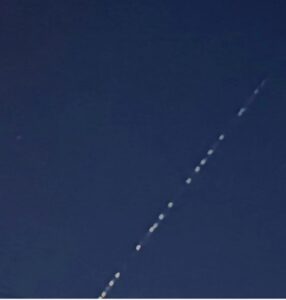 西の上空に数十個もの一列に並んだ点が空を移動していきます。