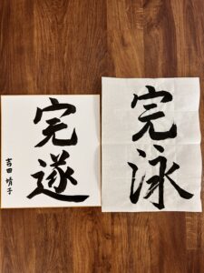 最初に書初めをするときに浮かんだ言葉は「完泳」でした!
