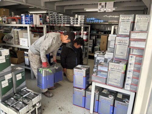 全社員で倉庫周り、事務所内の清掃を分担して、倉庫掃き掃除や塗料倉庫の整理など隅々まで行いました。