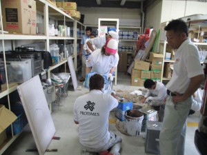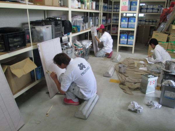 若手3人に調色と、ハケ塗りの勉強をしてもらいました。
