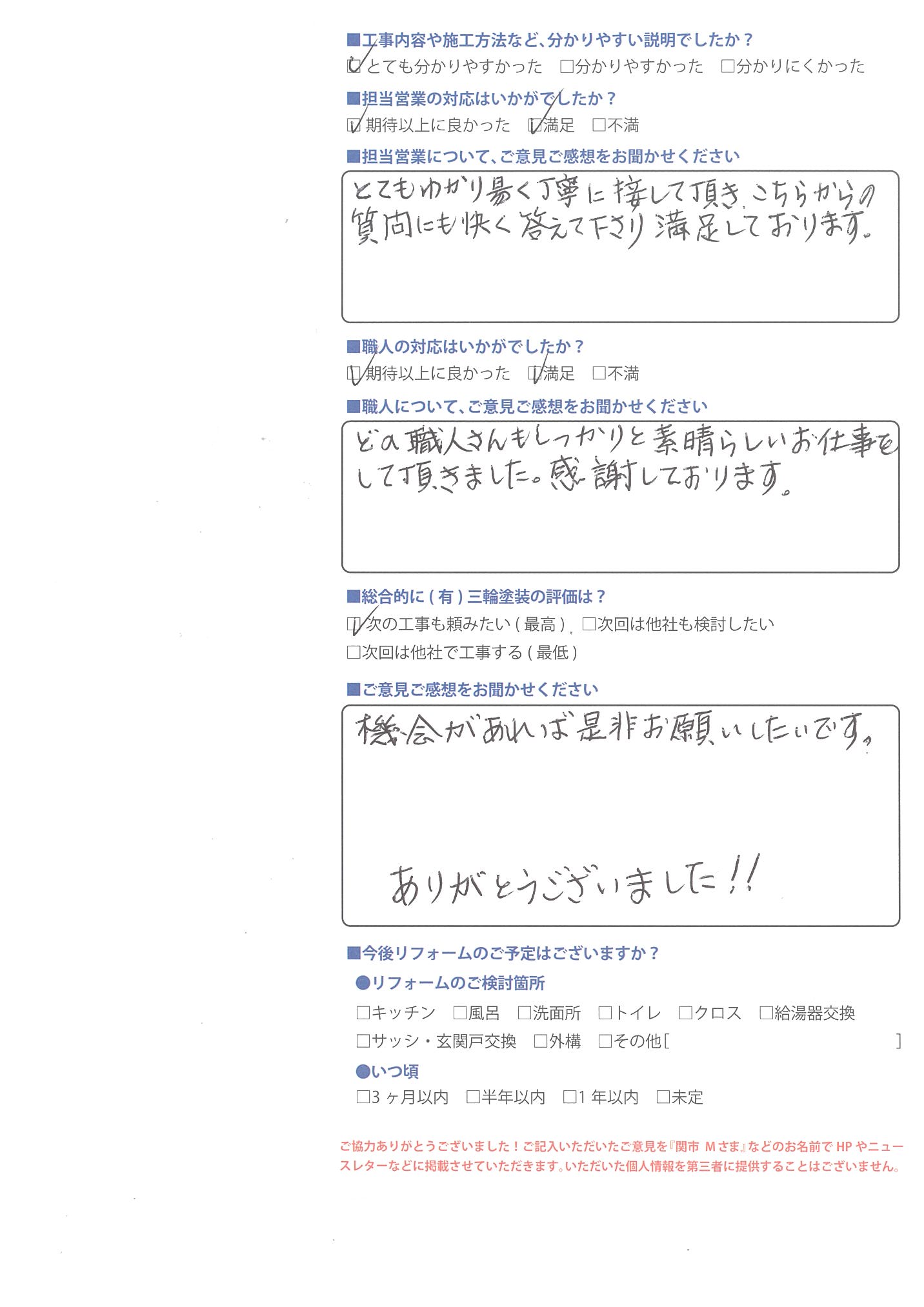 どの職人さんもしっかりと素晴らしいお仕事をして頂きました。 感謝しております。