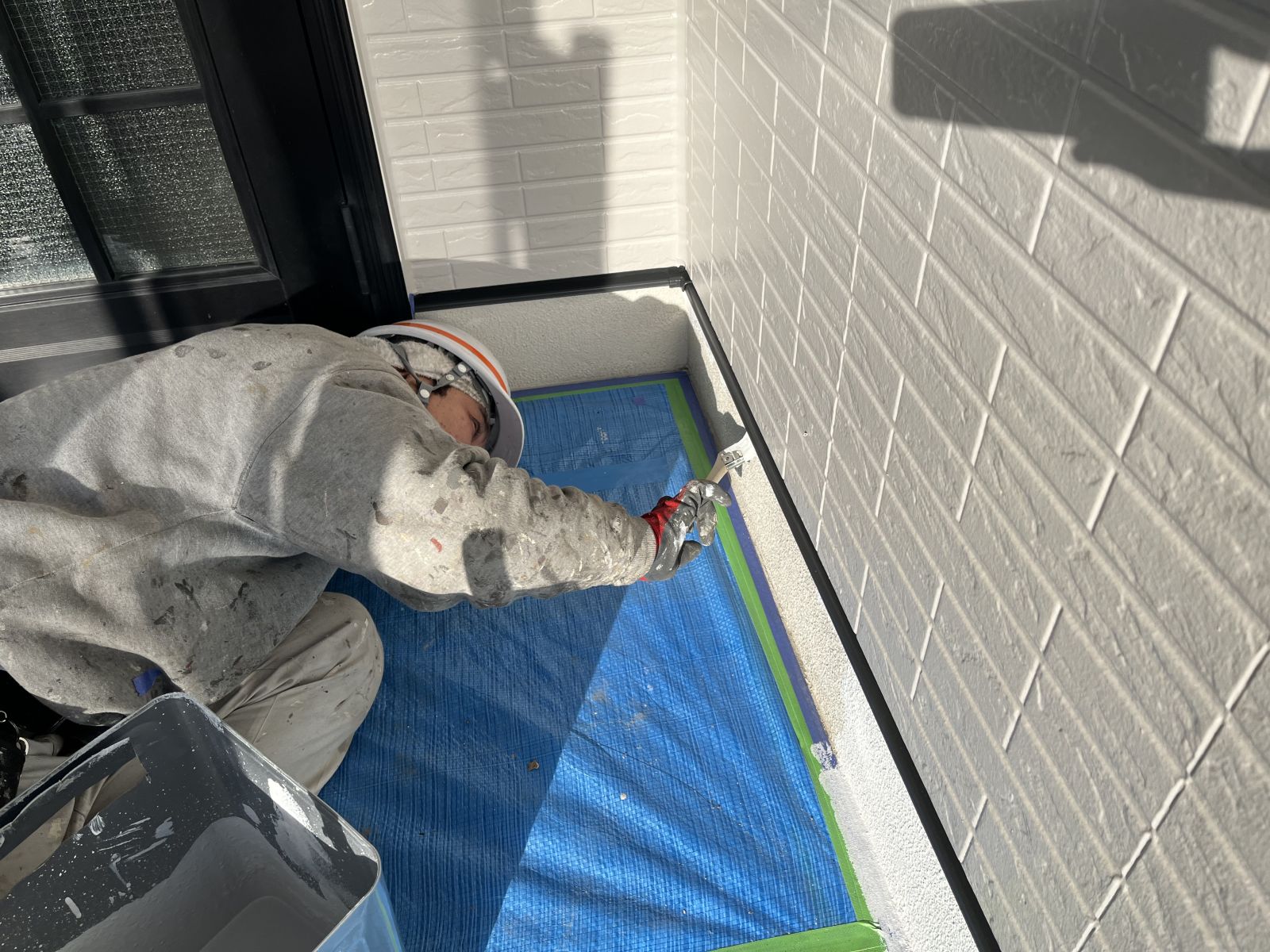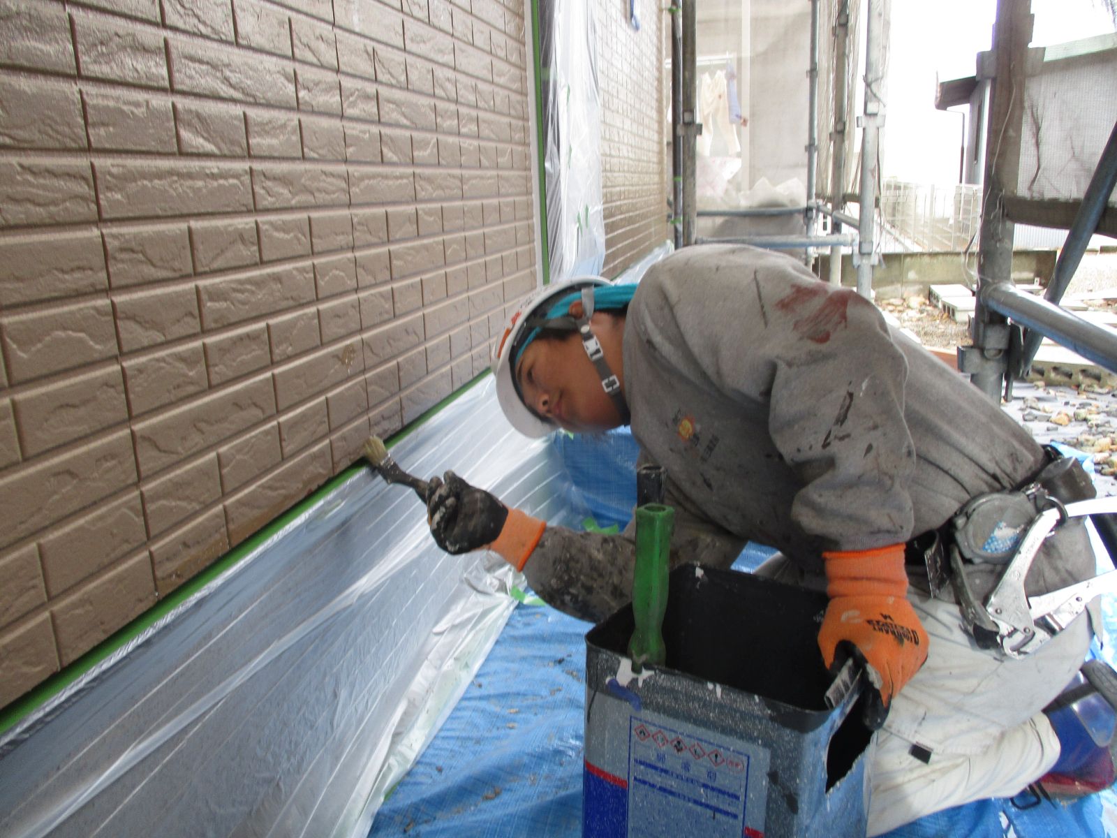 • プライマーを塗布しています。塗布後、シーリングを充填して、シーリングならしをします。