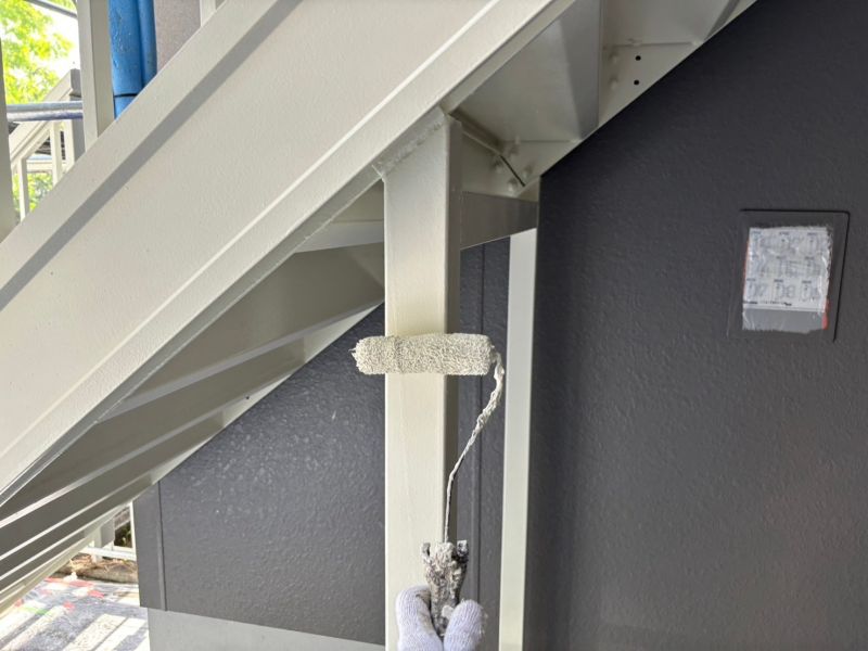 A棟 階段 塗装をしています。