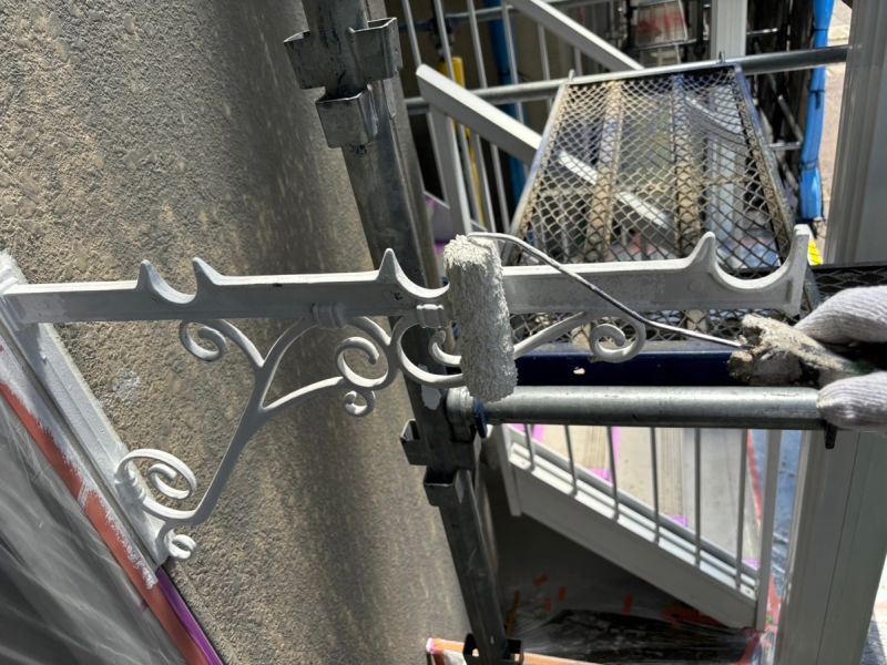 C棟 物干し金具 塗装をしています。