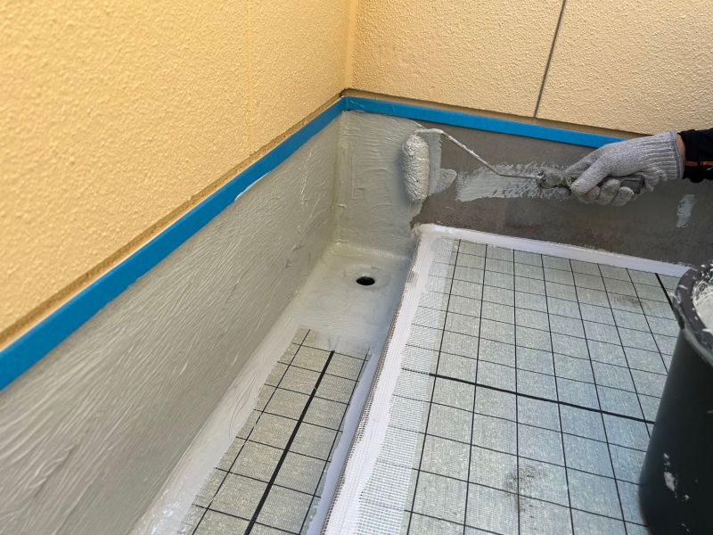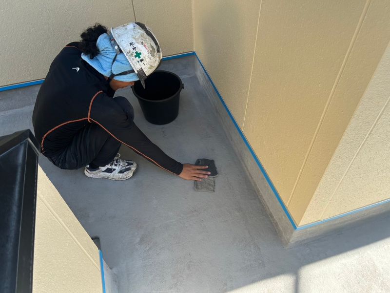 ケレンをしています。ホコリや汚れ、脆弱な部分を取り除きます。また下地表面を適度に粗くすることで、防水材との密着性を高めます。