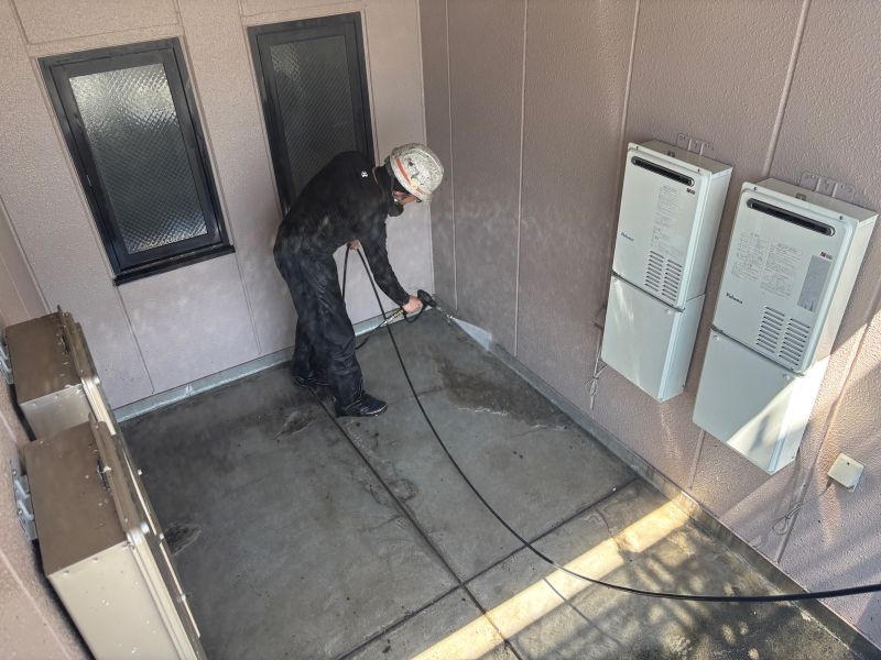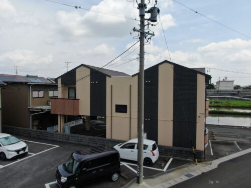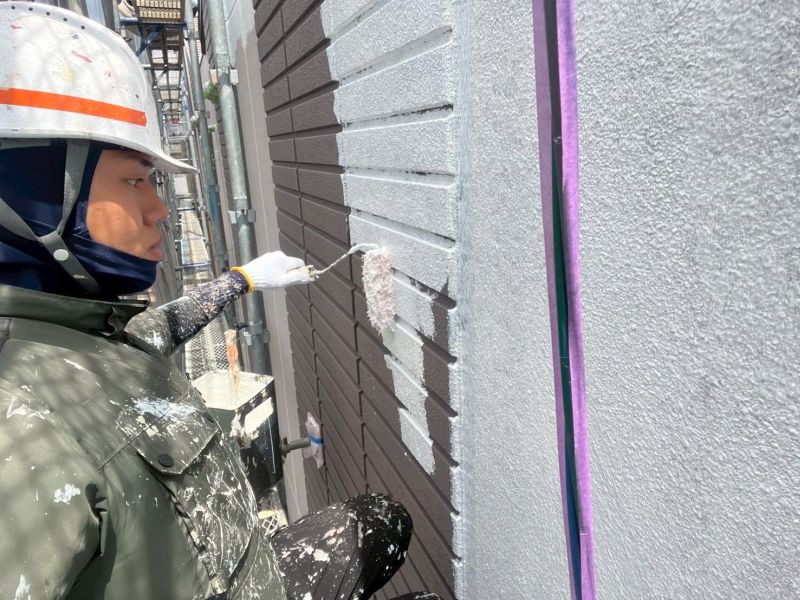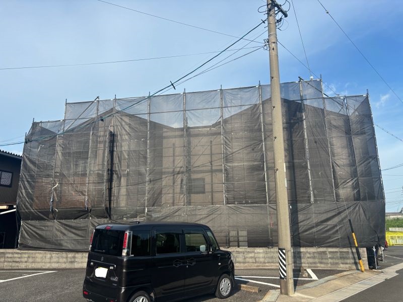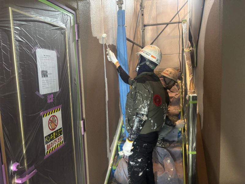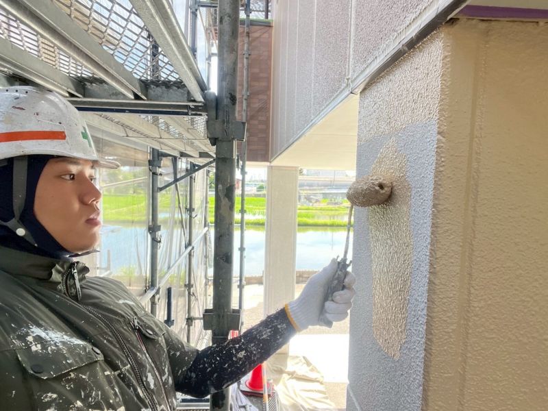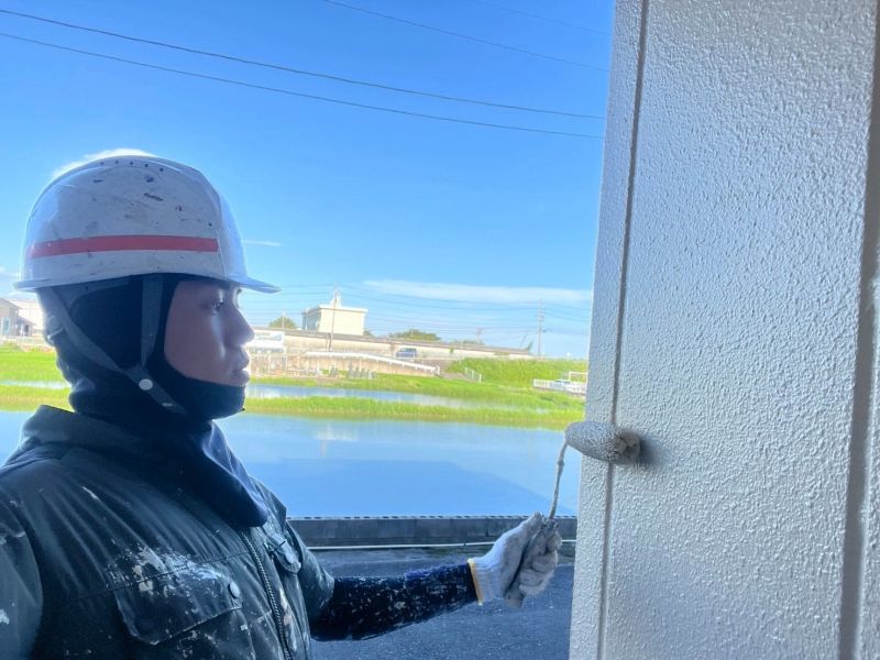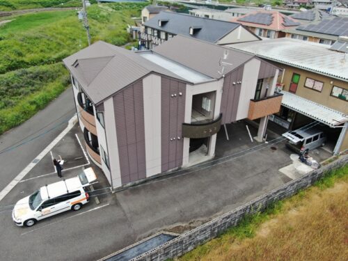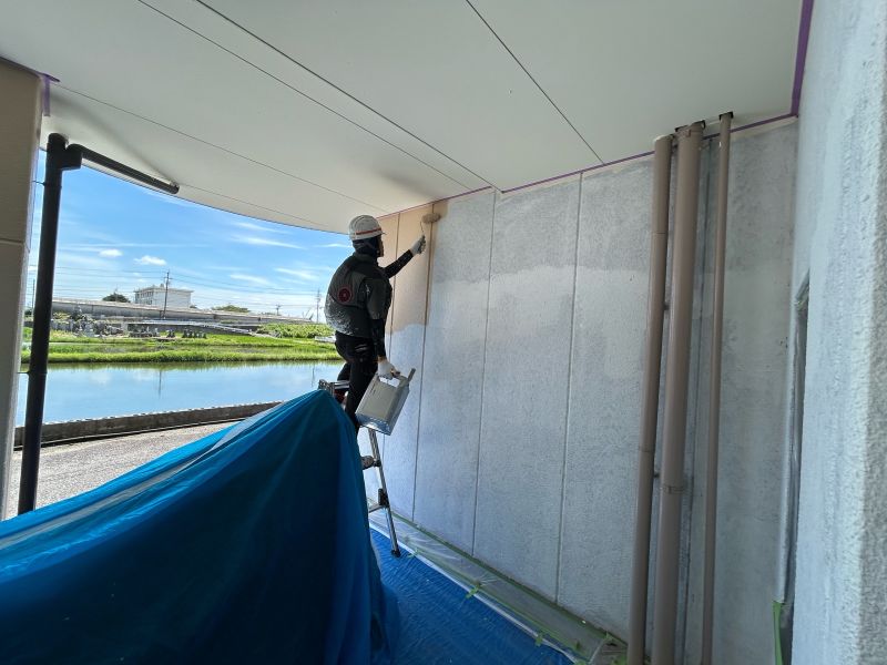 瑞穂市のアパートの外壁塗装・防水工事の様子