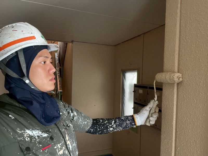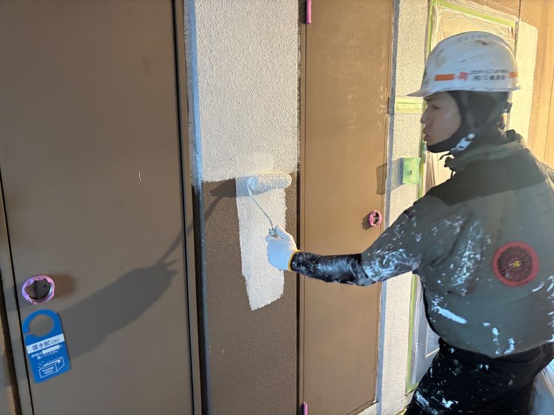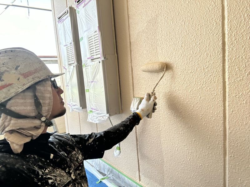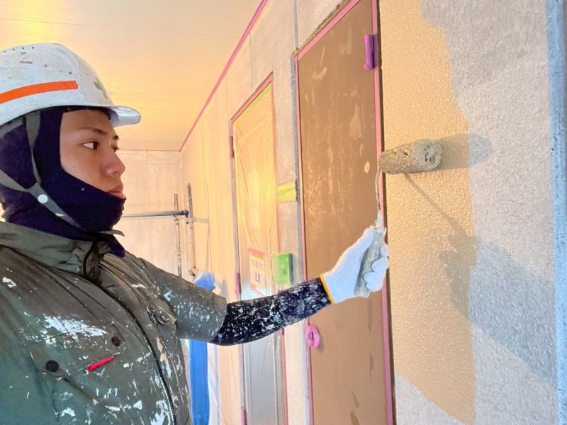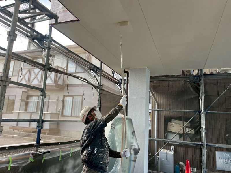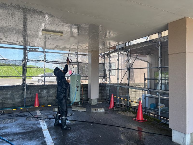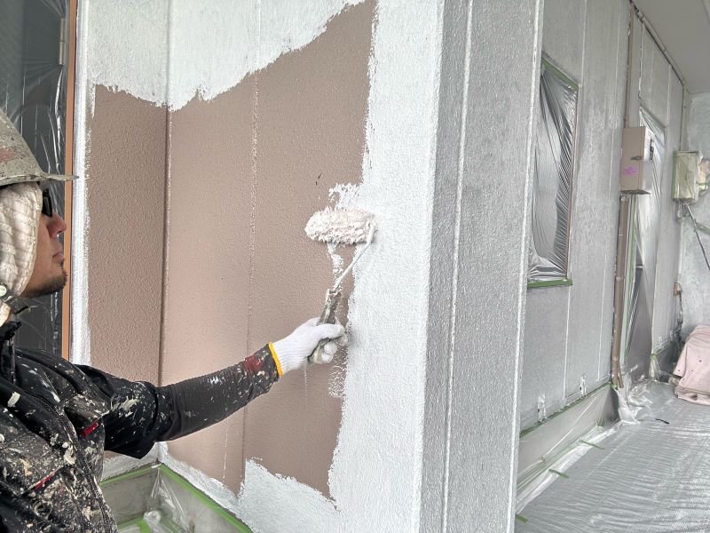 瑞穂市のアパートの外壁塗装・防水工事の様子