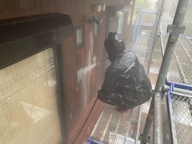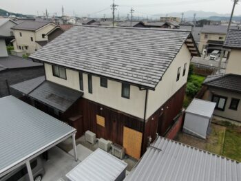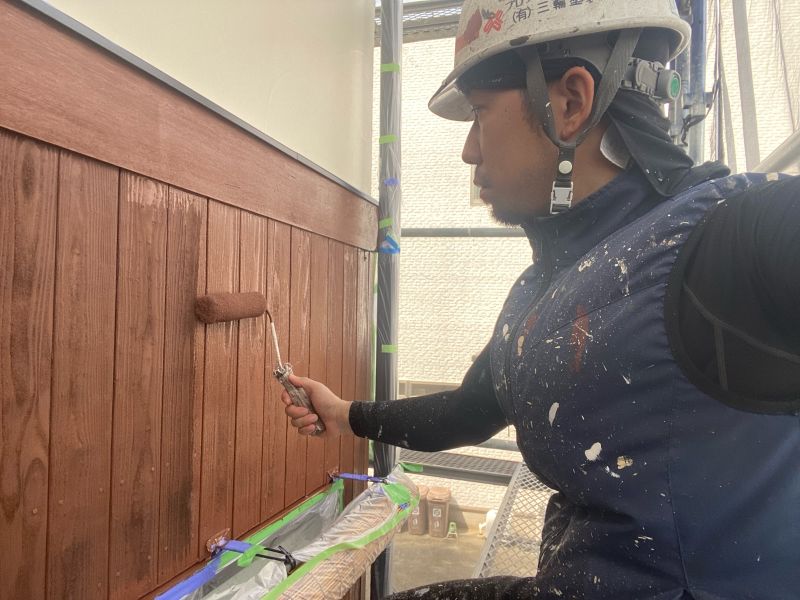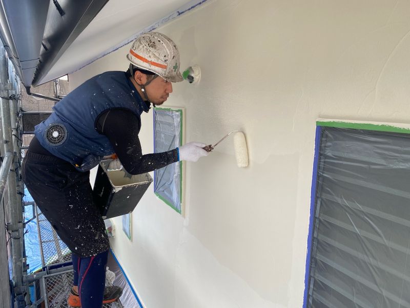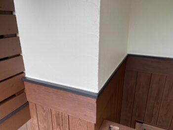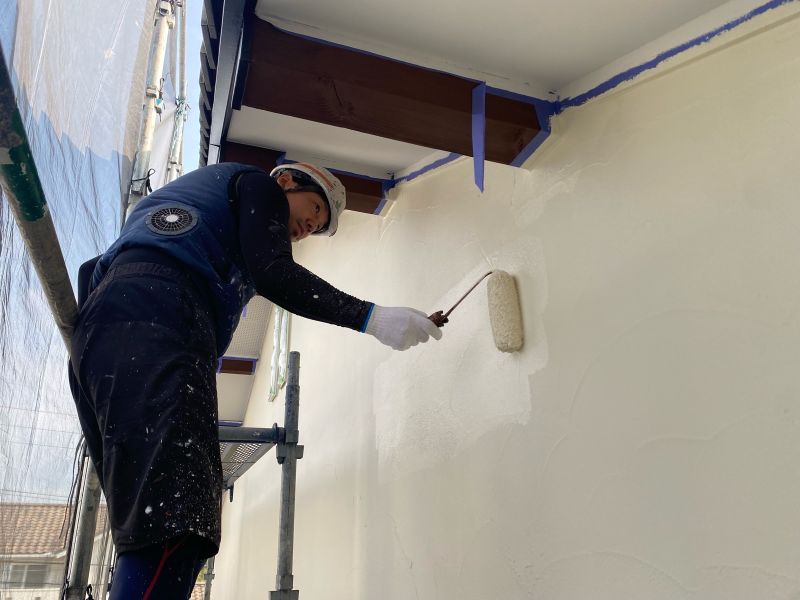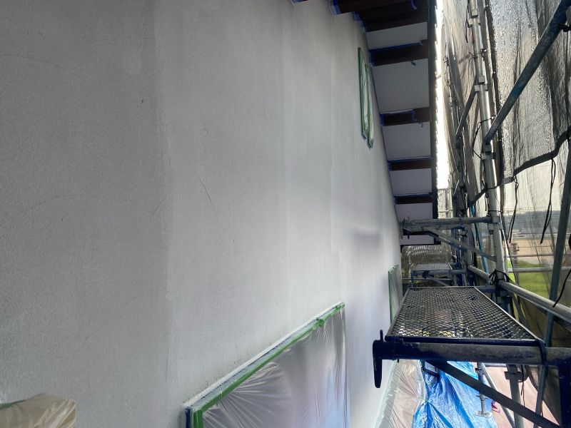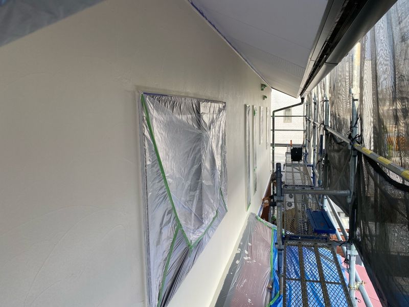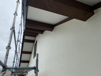 メーカー: アステックペイント(サイディング部)/和信化学工業(木部) 材料名: 超低汚染プラチナリファイン2000MF‐IR(モルタル部)/ガードラックアクア(木部) カラー1: 8091ブロークンホワイト (モルタル部)