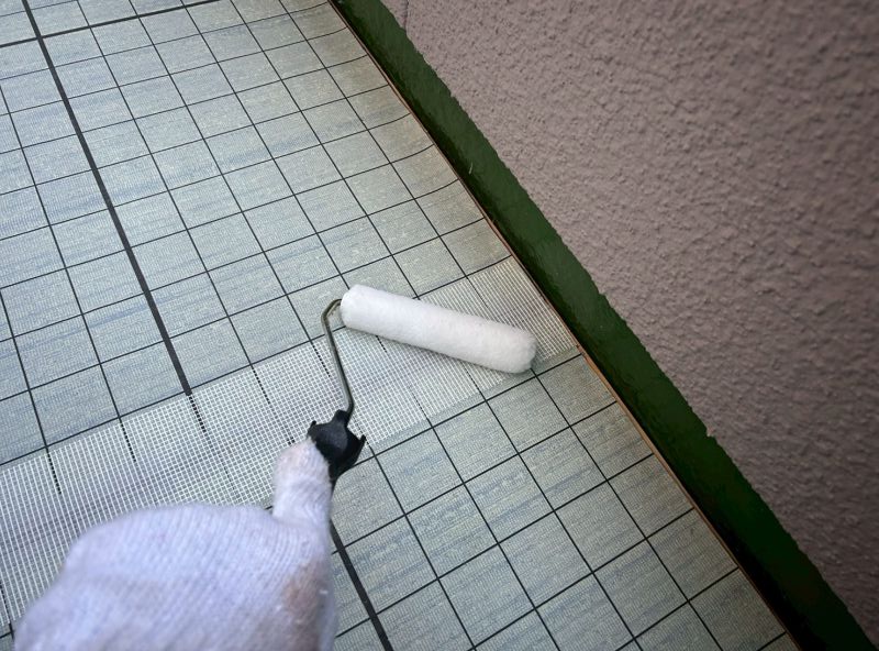 ウレタン塗膜1層目を塗布しています。