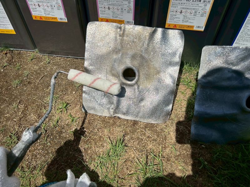 防水層 素地調整をしています。