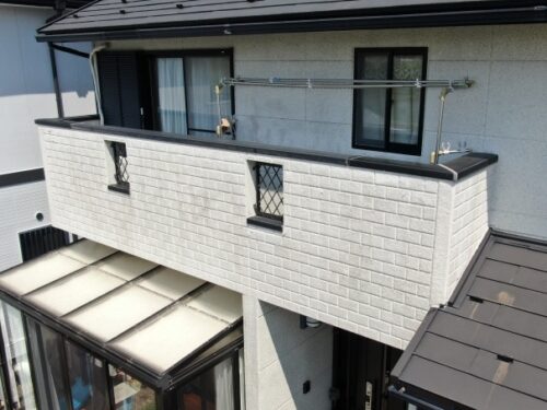 関市の住宅塗装とベランダ床補修・防水工事、ベランダ壁板金工事を行いました