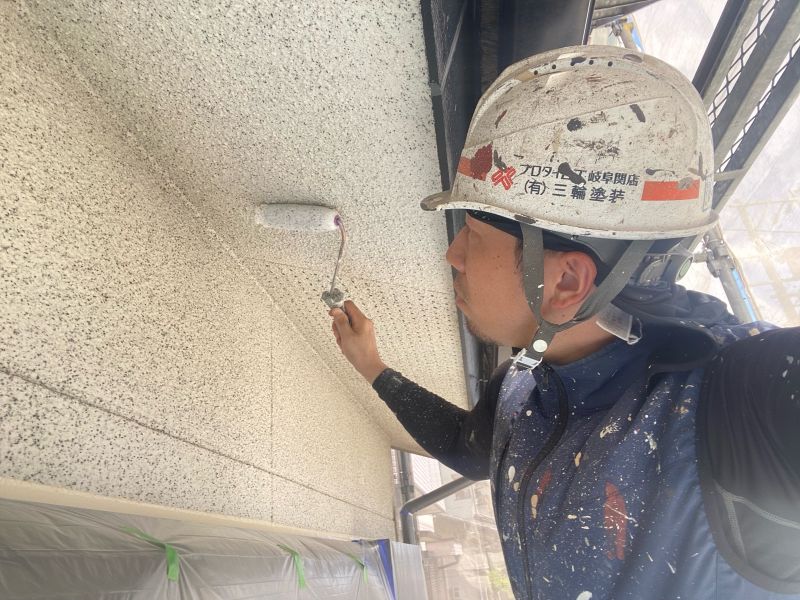 ウレタン塗膜2層目を塗布しています。