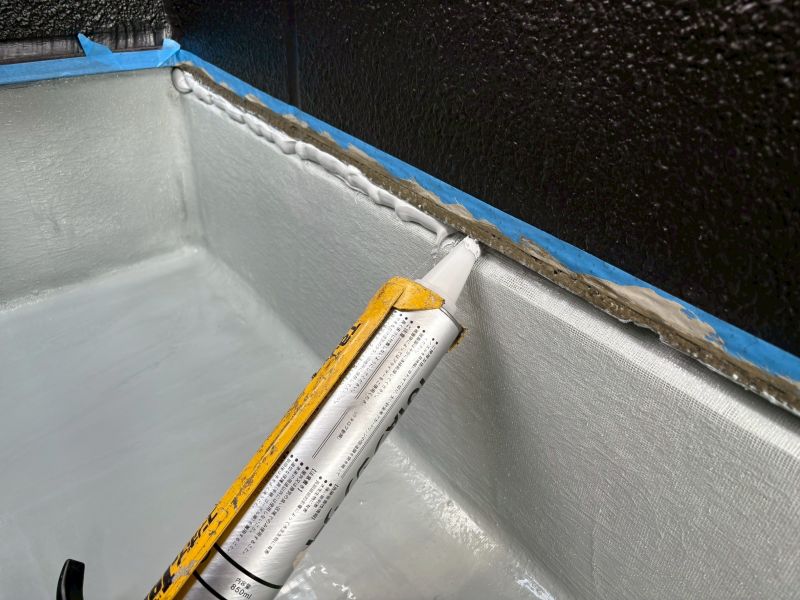 • 外壁との取り合い部分にシーリングを充填します