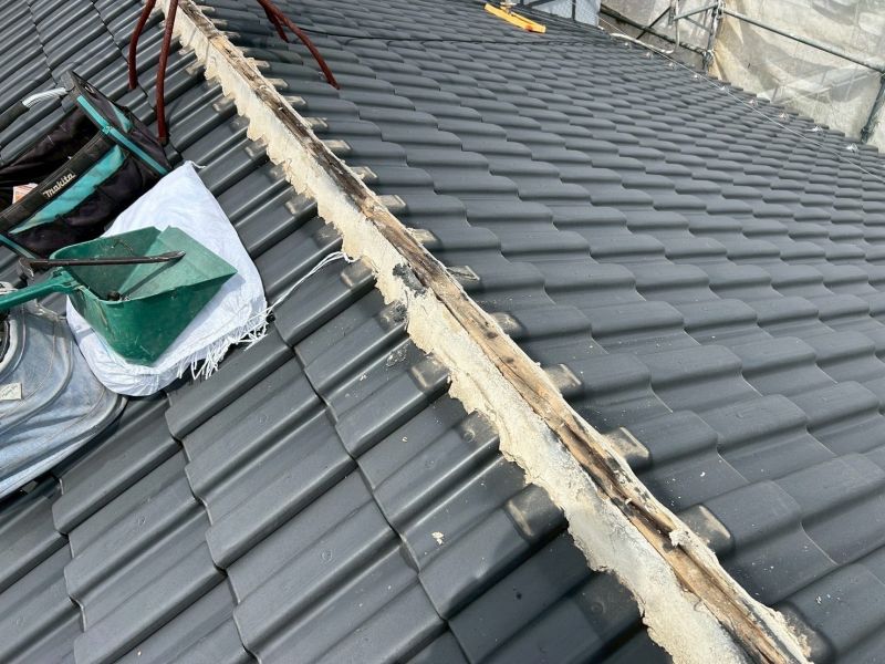 • 棟瓦を撤去し状況を確認します