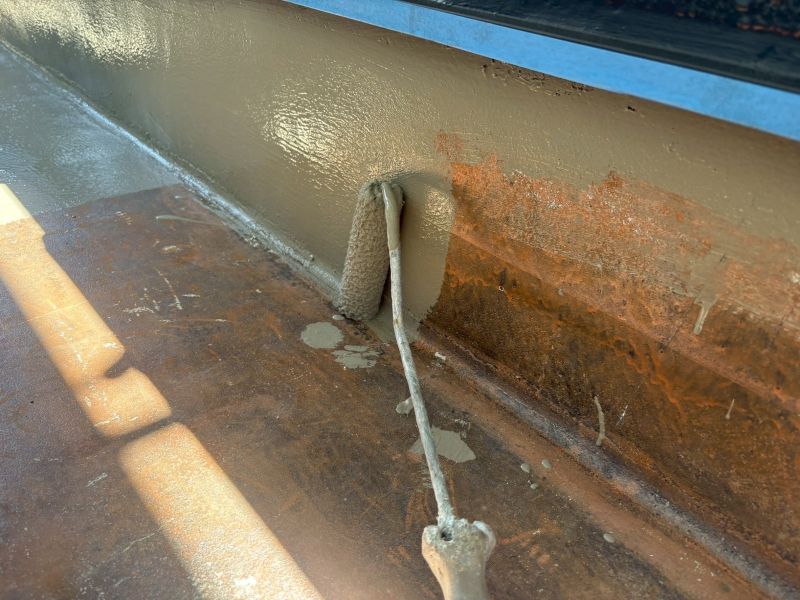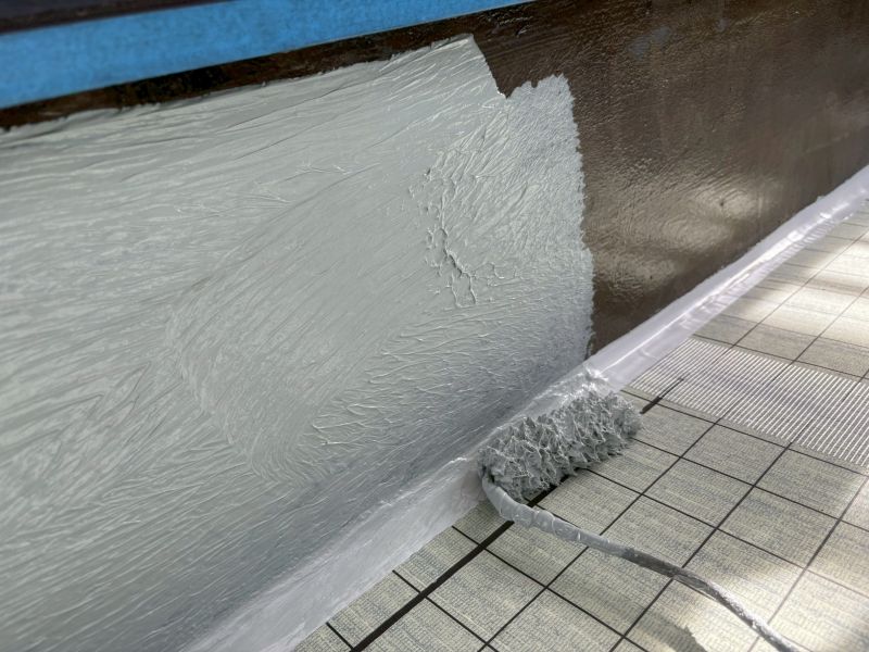• 立上り部ウレタン塗膜防水2層目作業状況