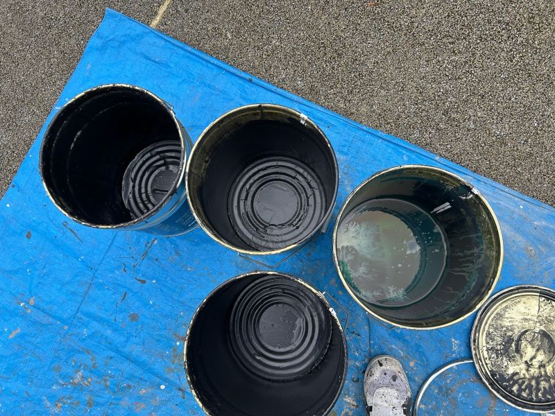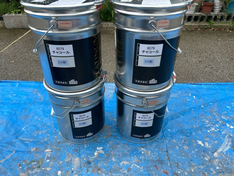 • 外壁面積に対し必要である4缶の材料を使い切り、塗布量確認をします