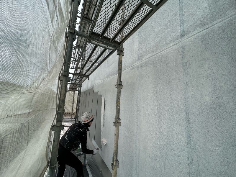• 外壁下塗り作業です