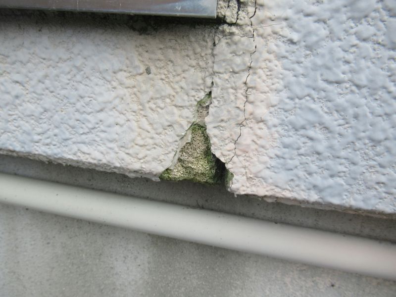 • 雨筋に沿ってクラック・欠損が起きています