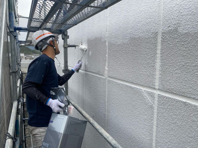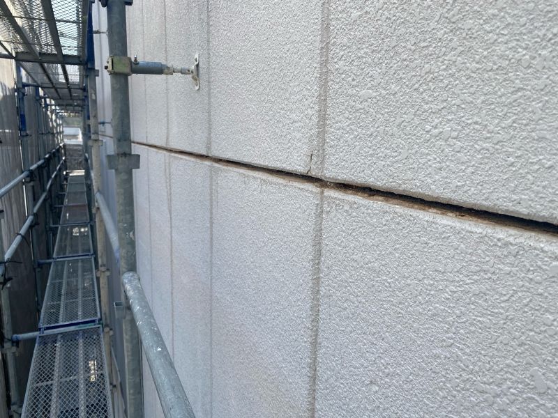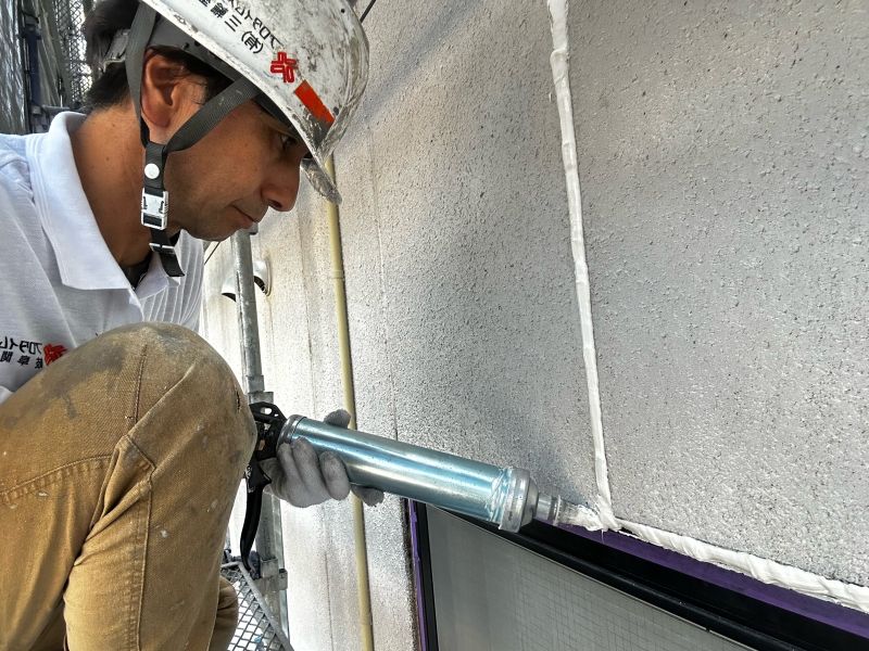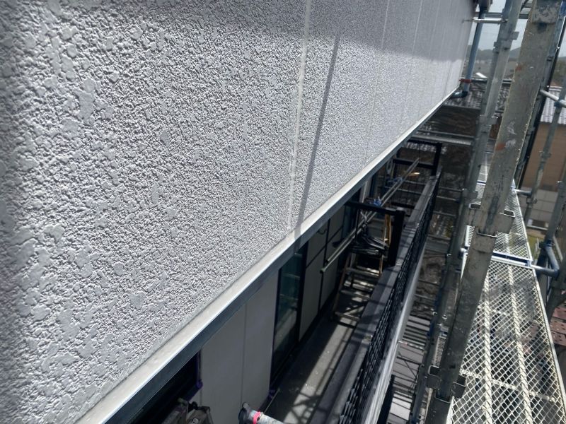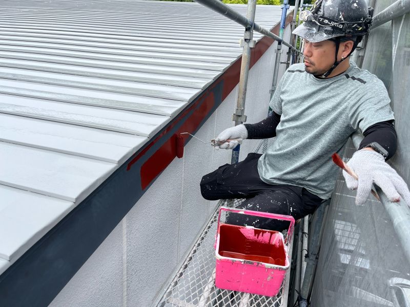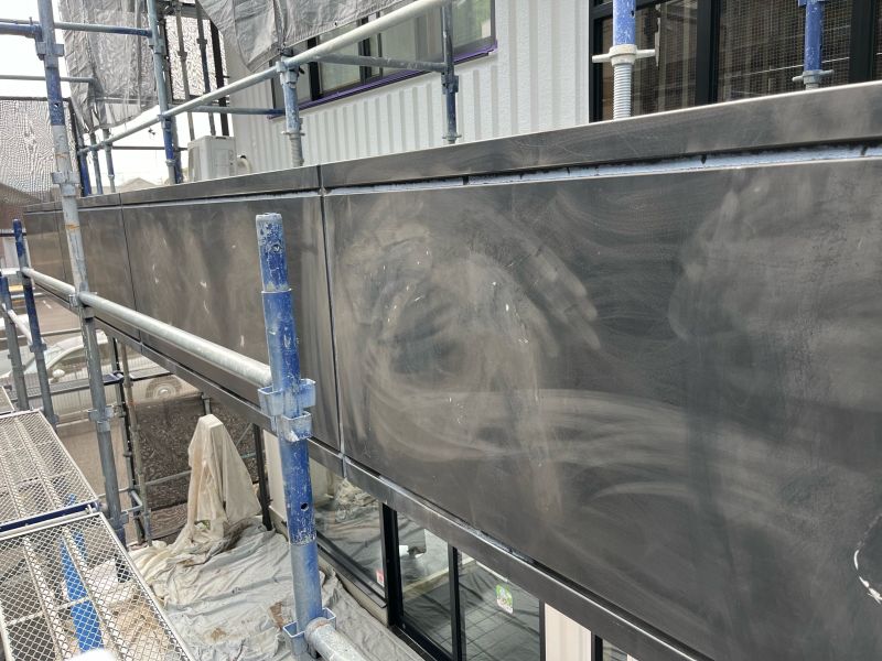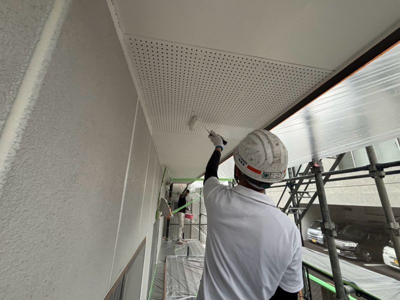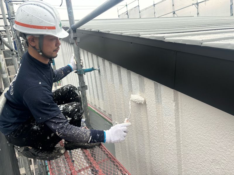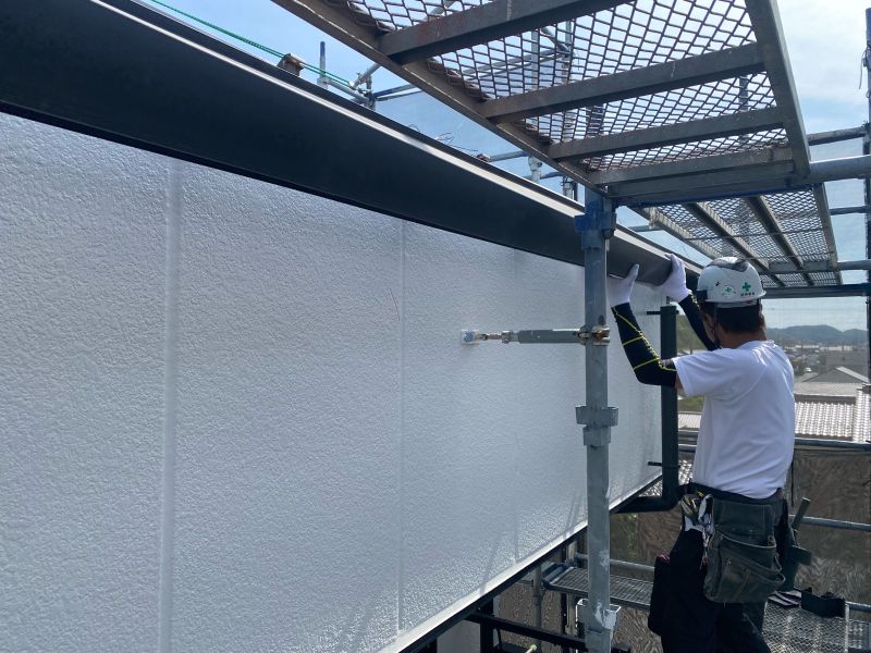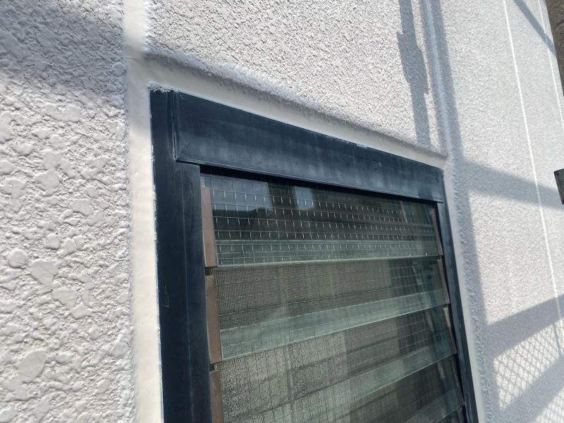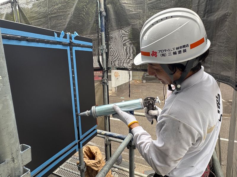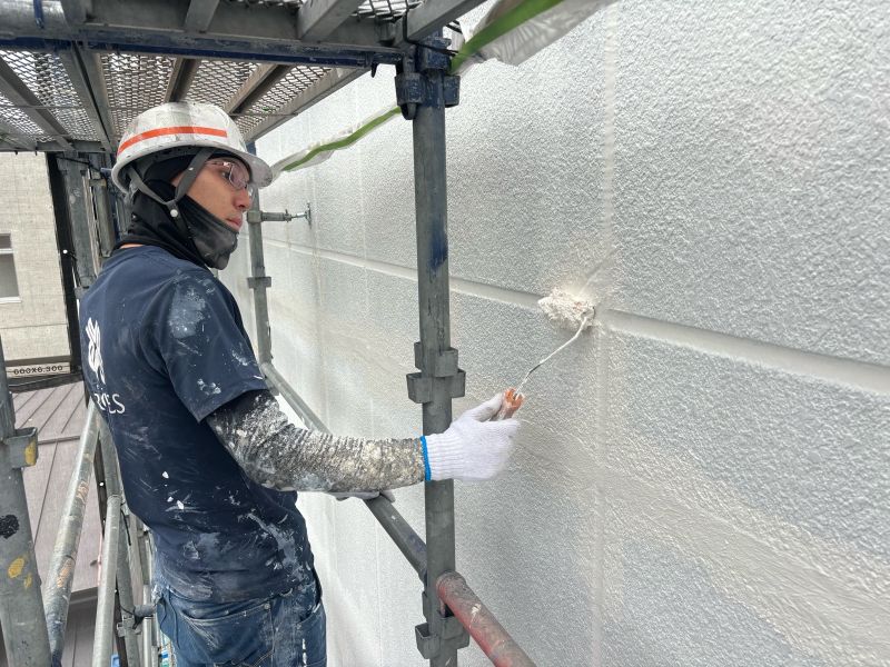 庇見付け 目地部シーリングプライマー塗布作業を行います