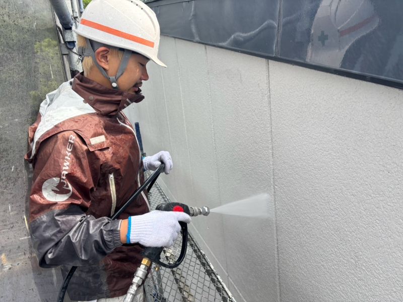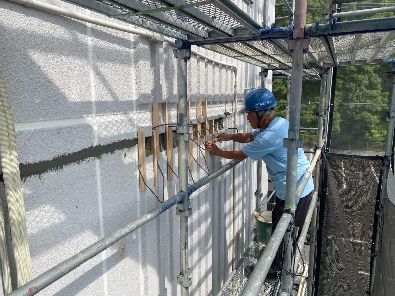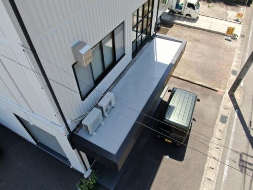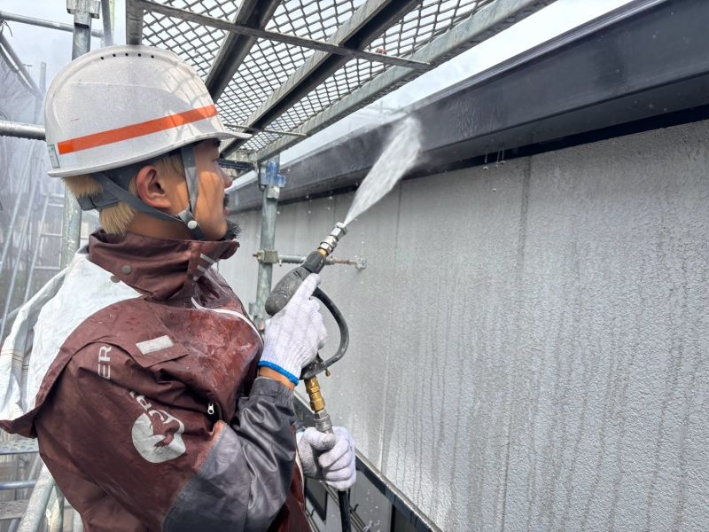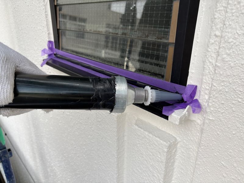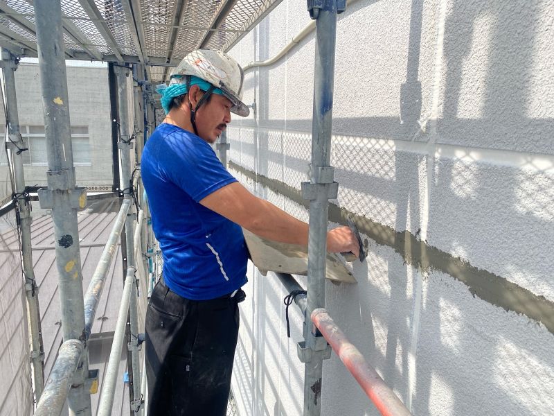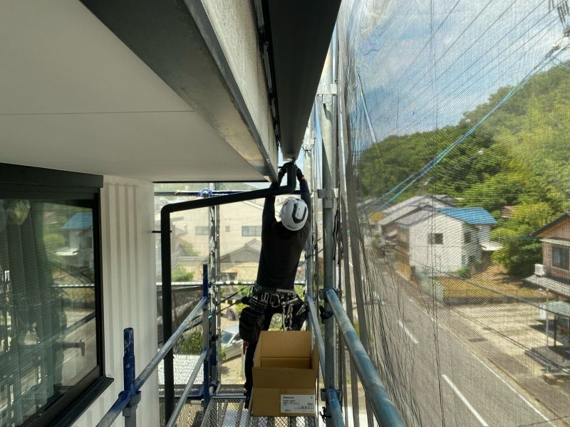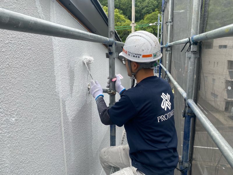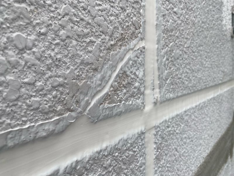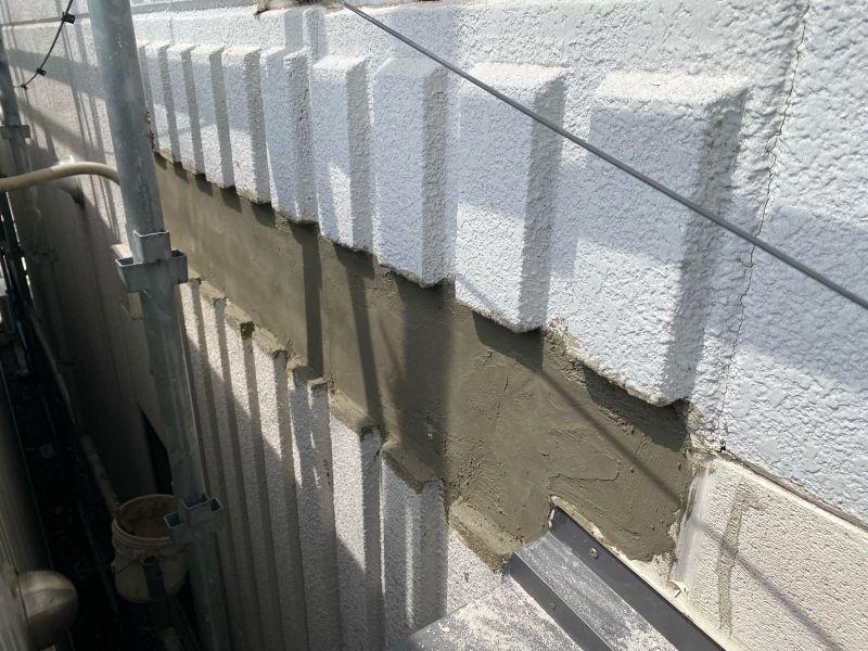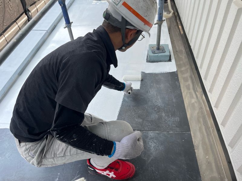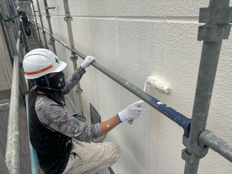 庇見付け 目地部シーリングプライマー塗布作業を行います