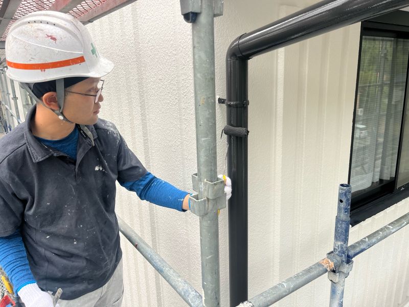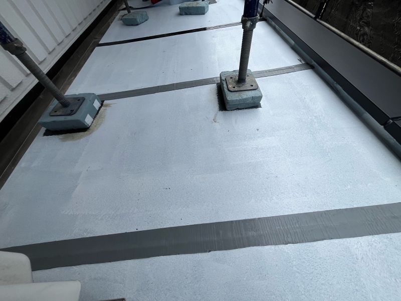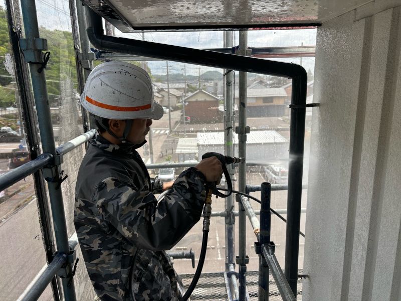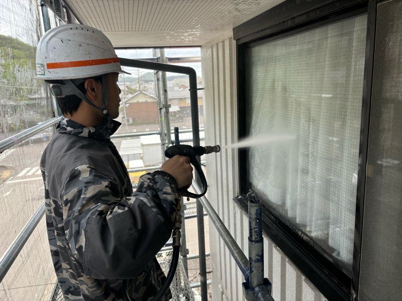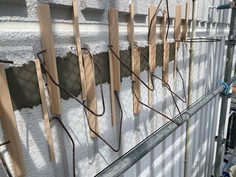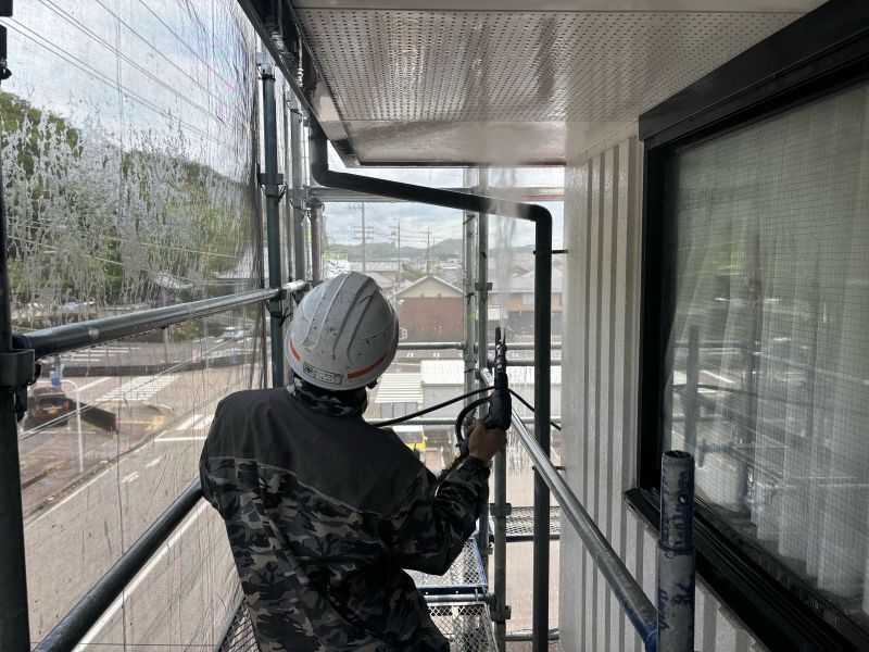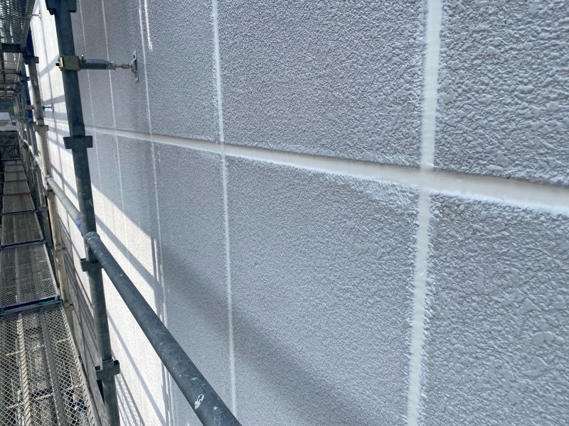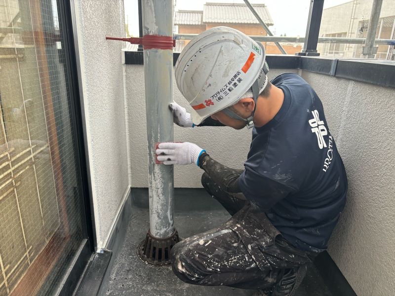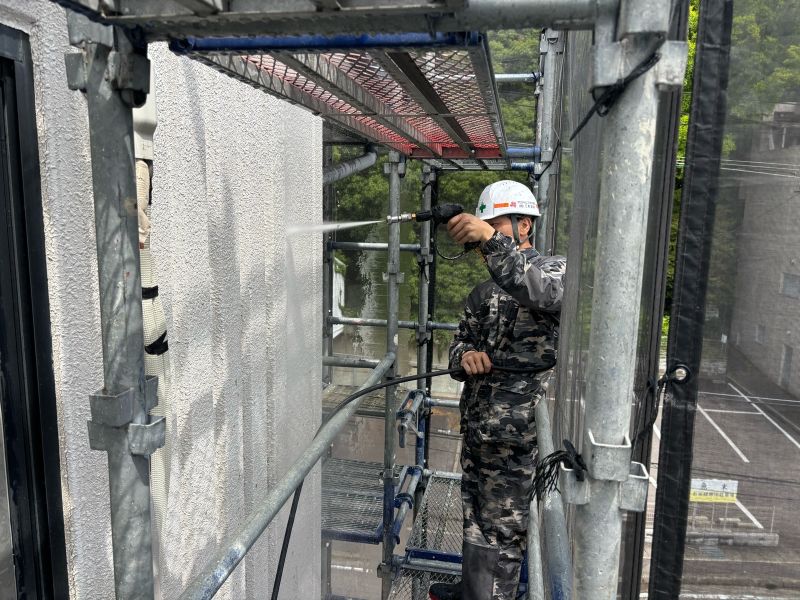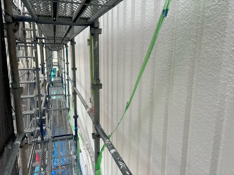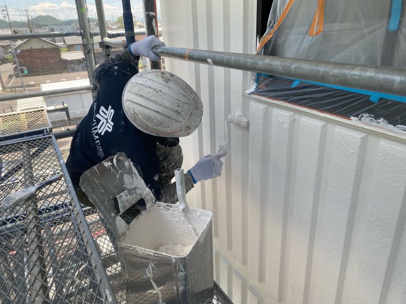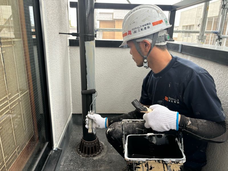 庇見付け 目地部シーリングプライマー塗布作業を行います