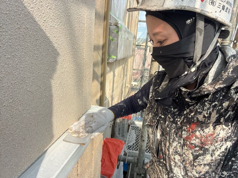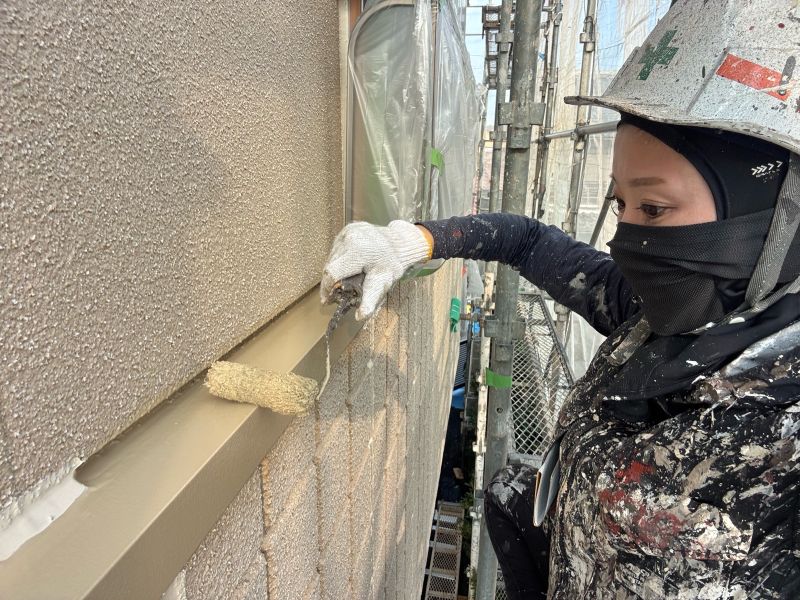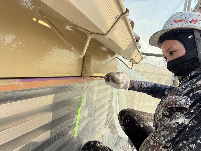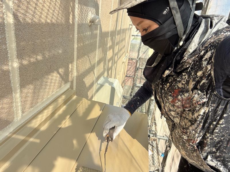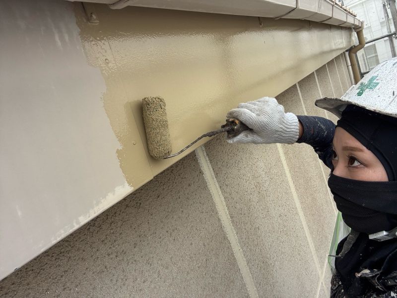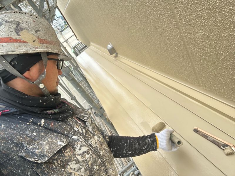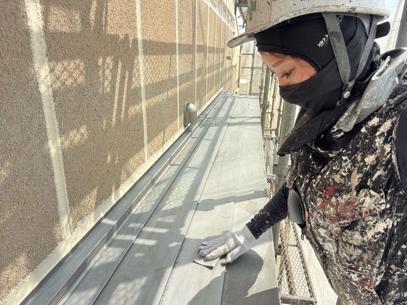 庇 上塗りを行っています