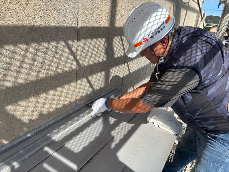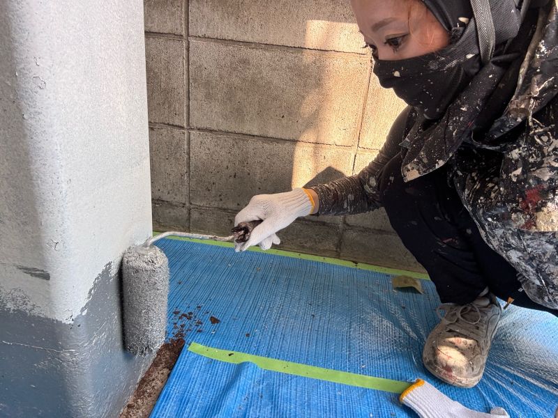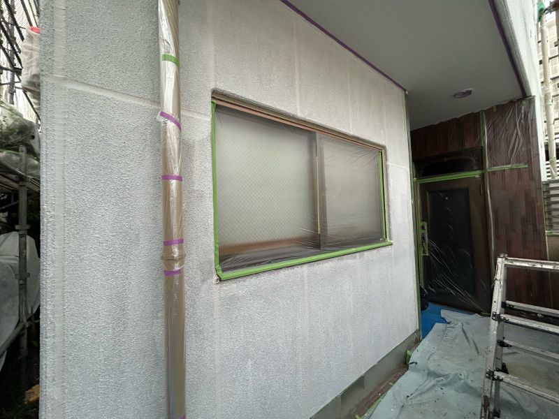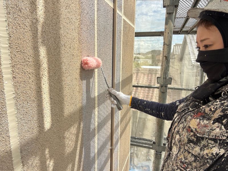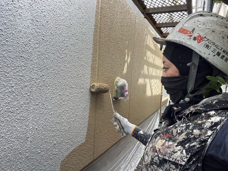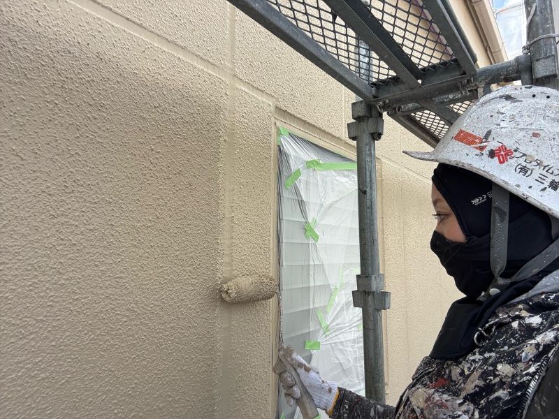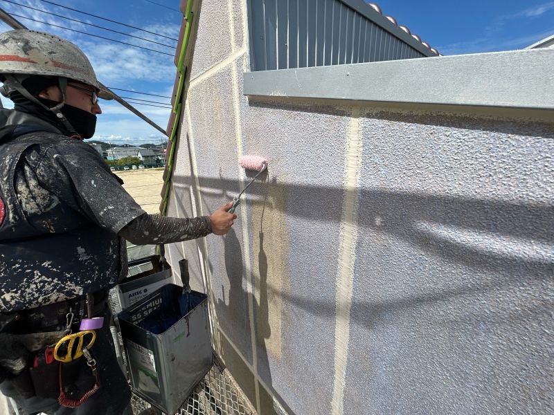 庇 上塗りを行っています