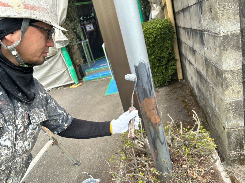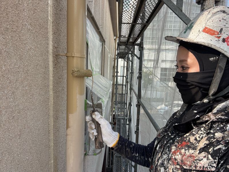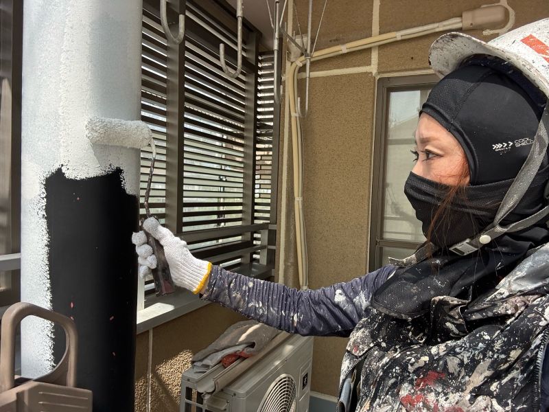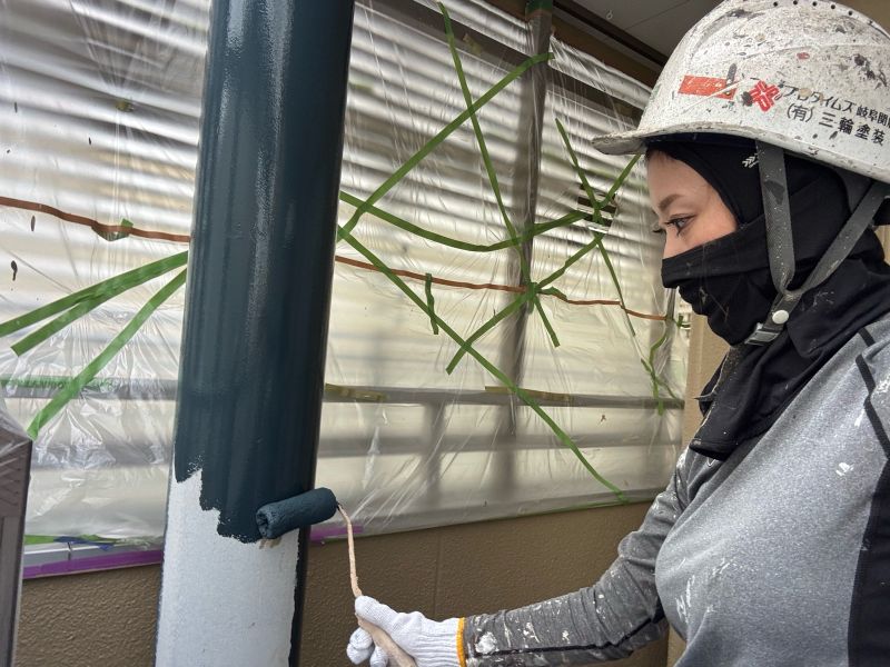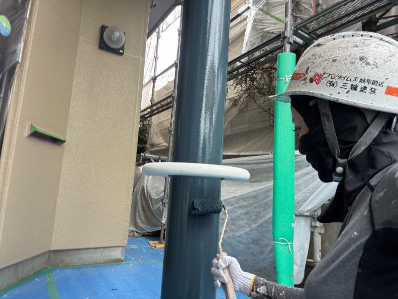 竪樋 上塗りを行っています
