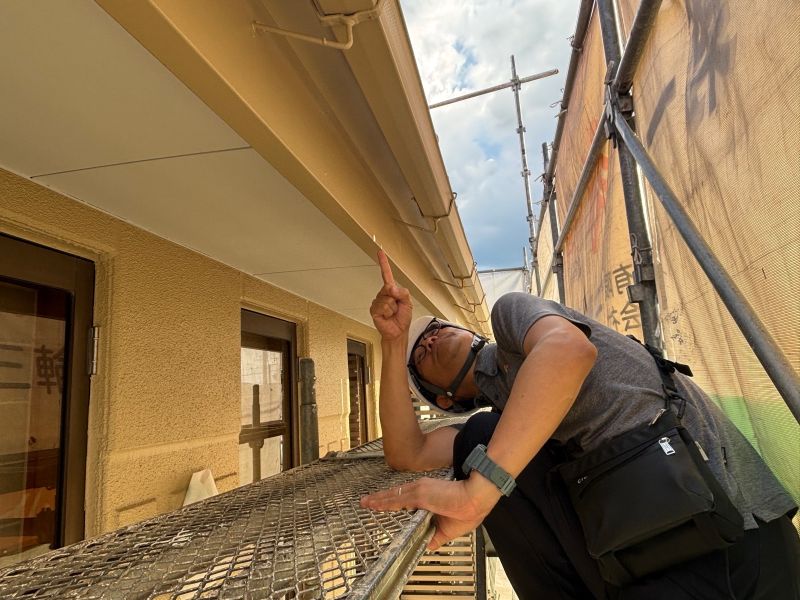軒裏天井を塗装しています
