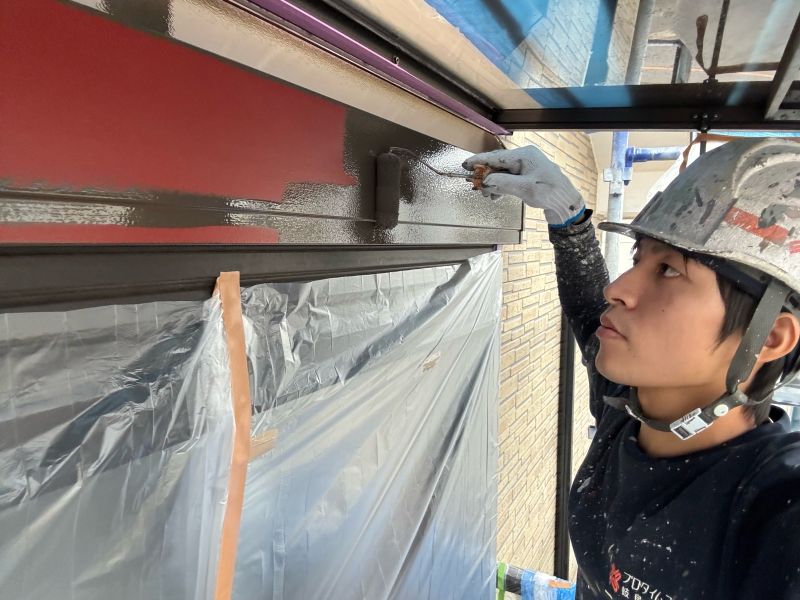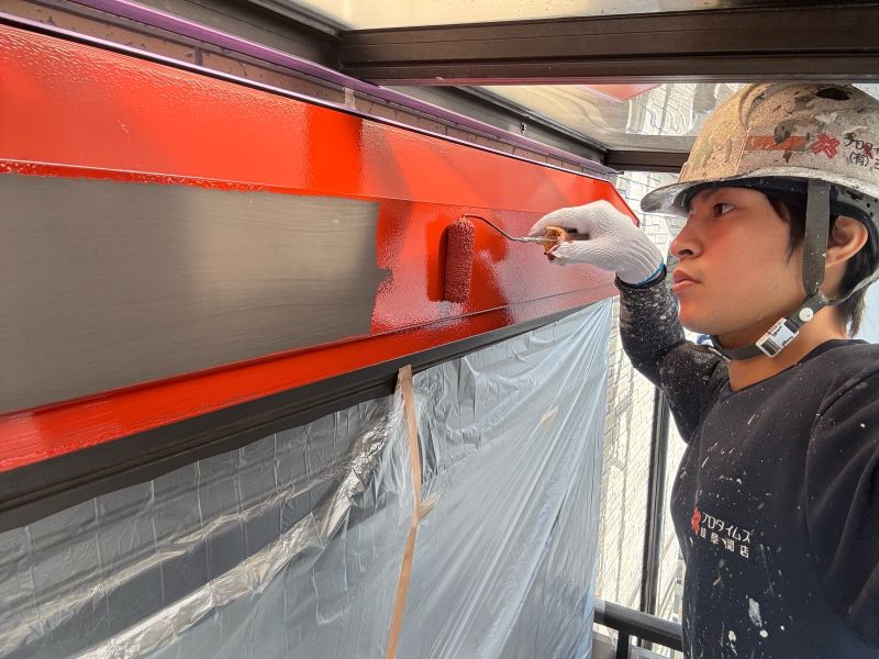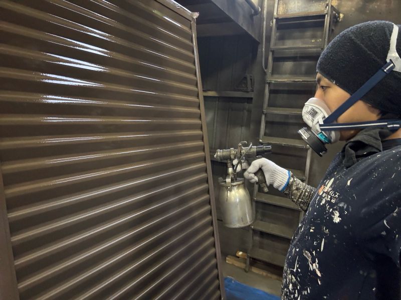 シャッターボックス 上塗り1回目作業です