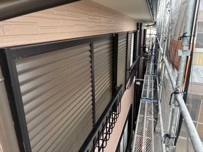 雨戸 吹付2回目作業状況