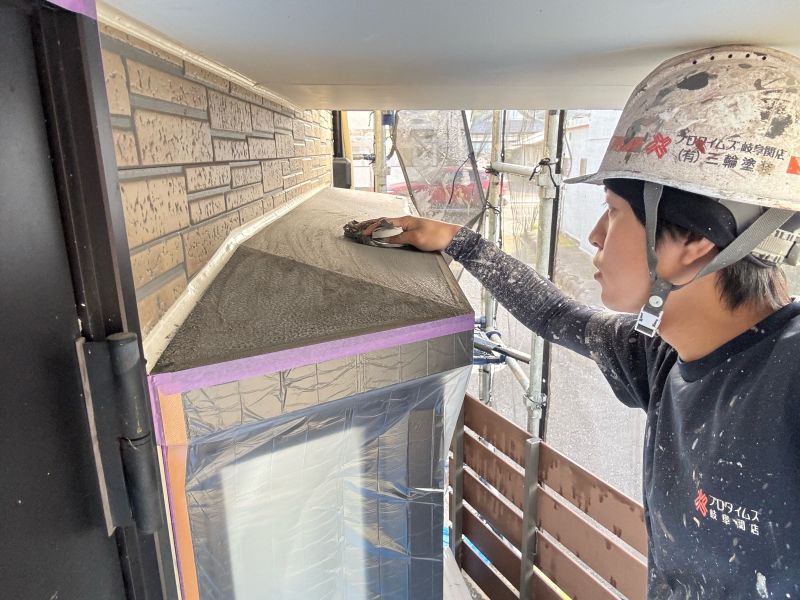 出窓庇 上塗り1回目が完了しました