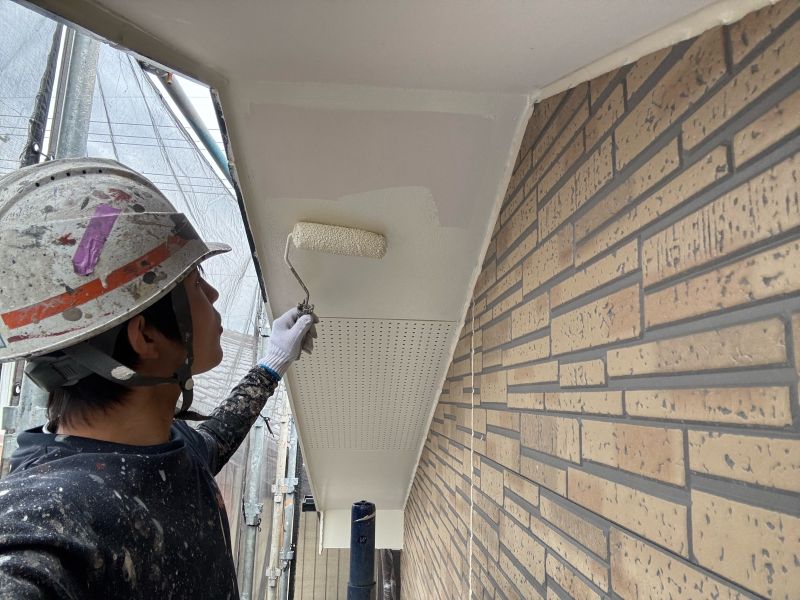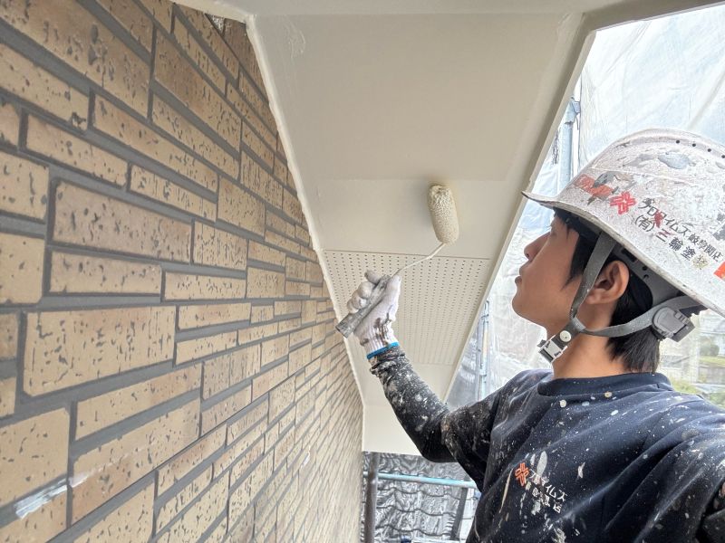 軒裏天井 上塗り塗装1回目です