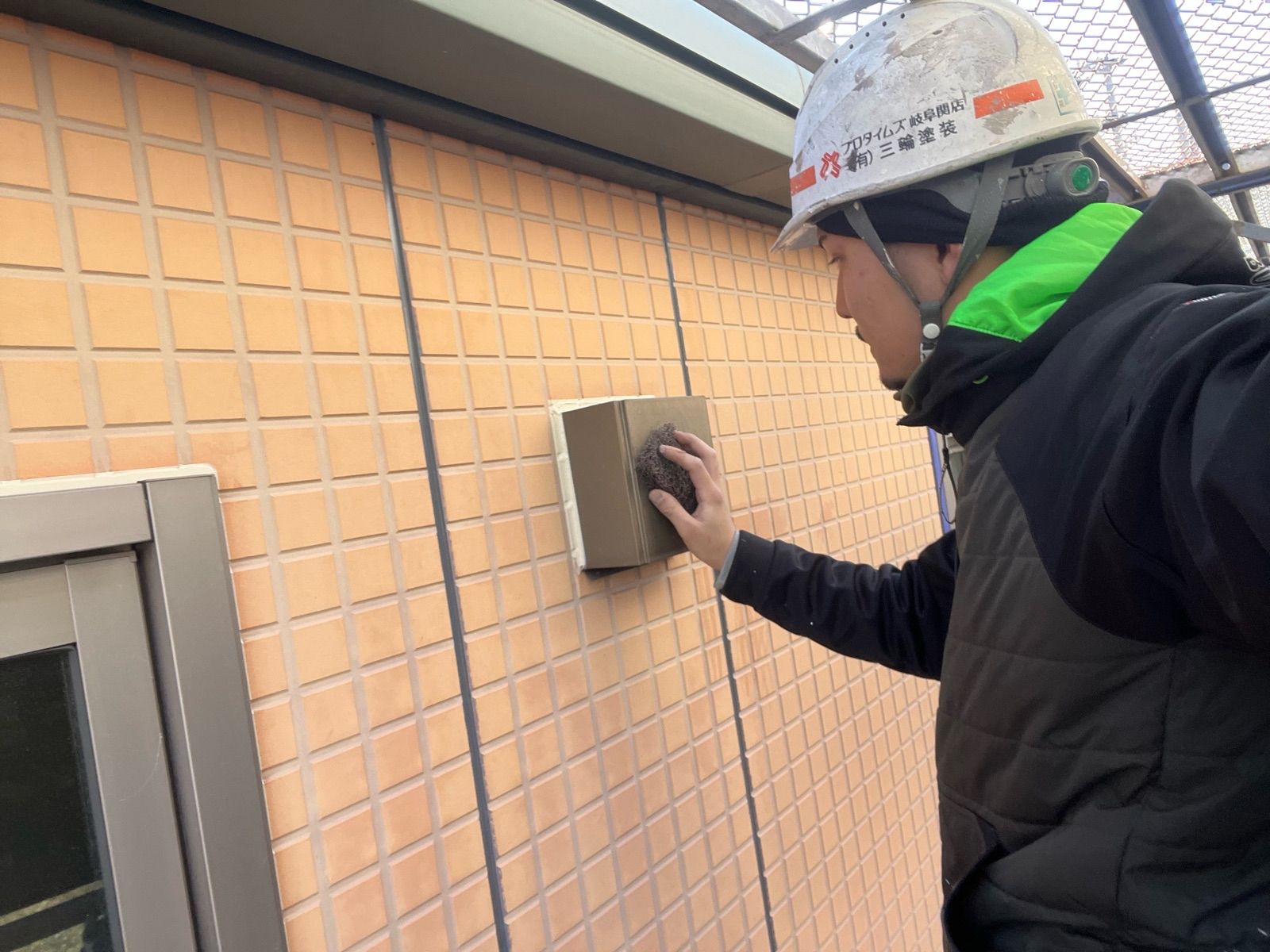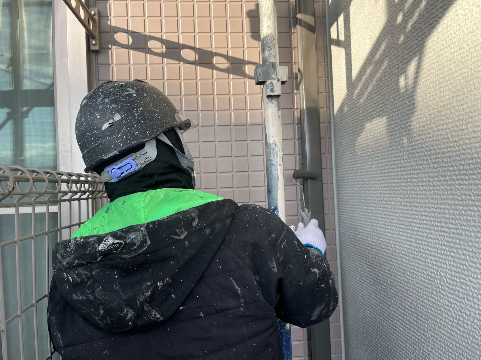 • エアコン配管カバー 上塗り1回目作業状況