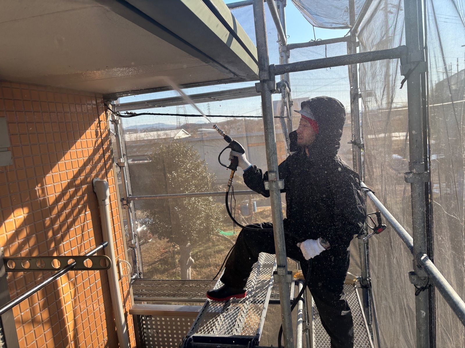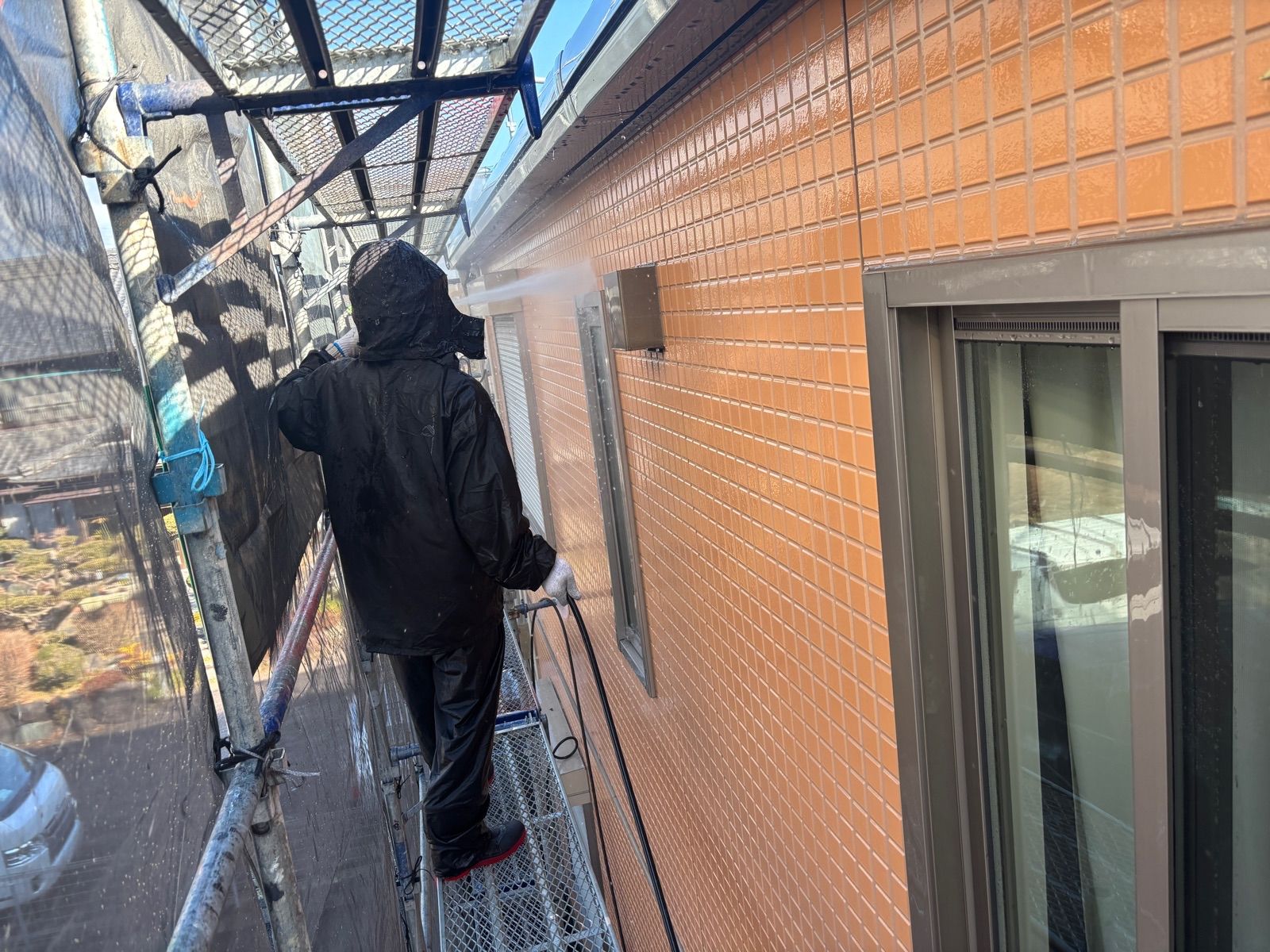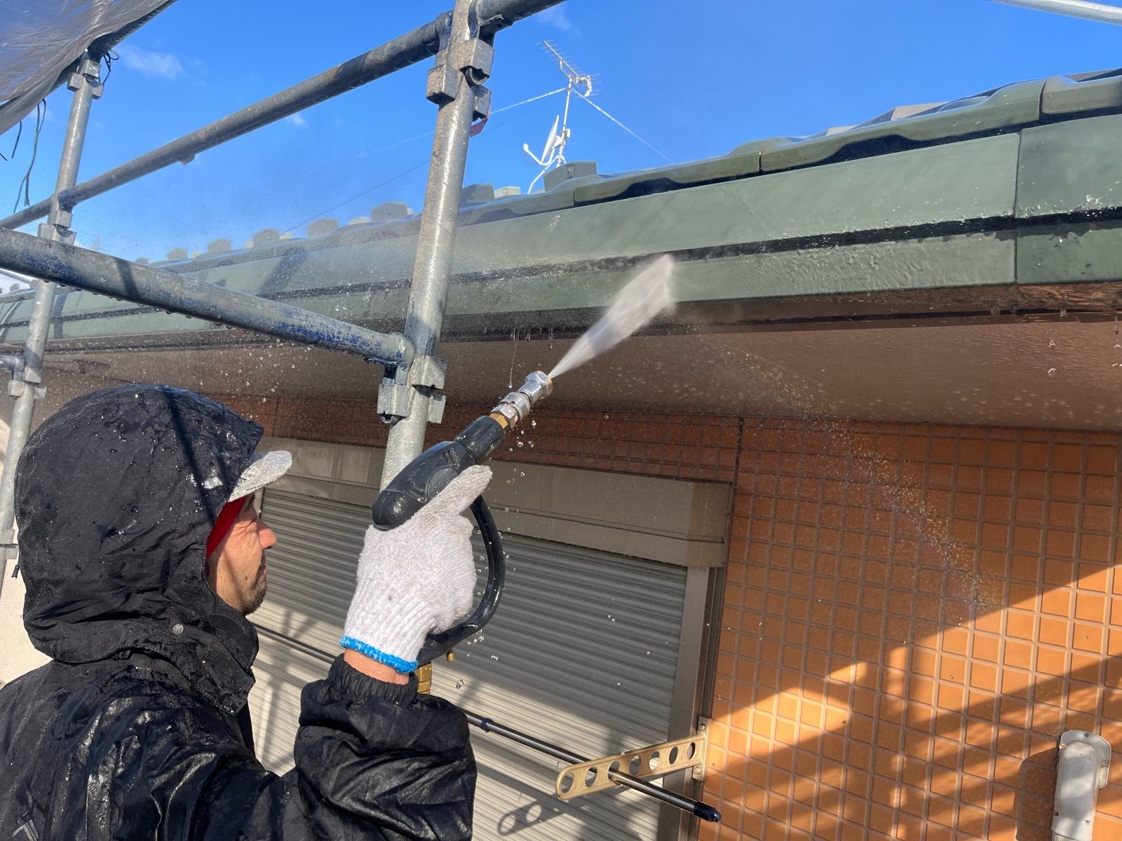 • 外壁を洗浄しています