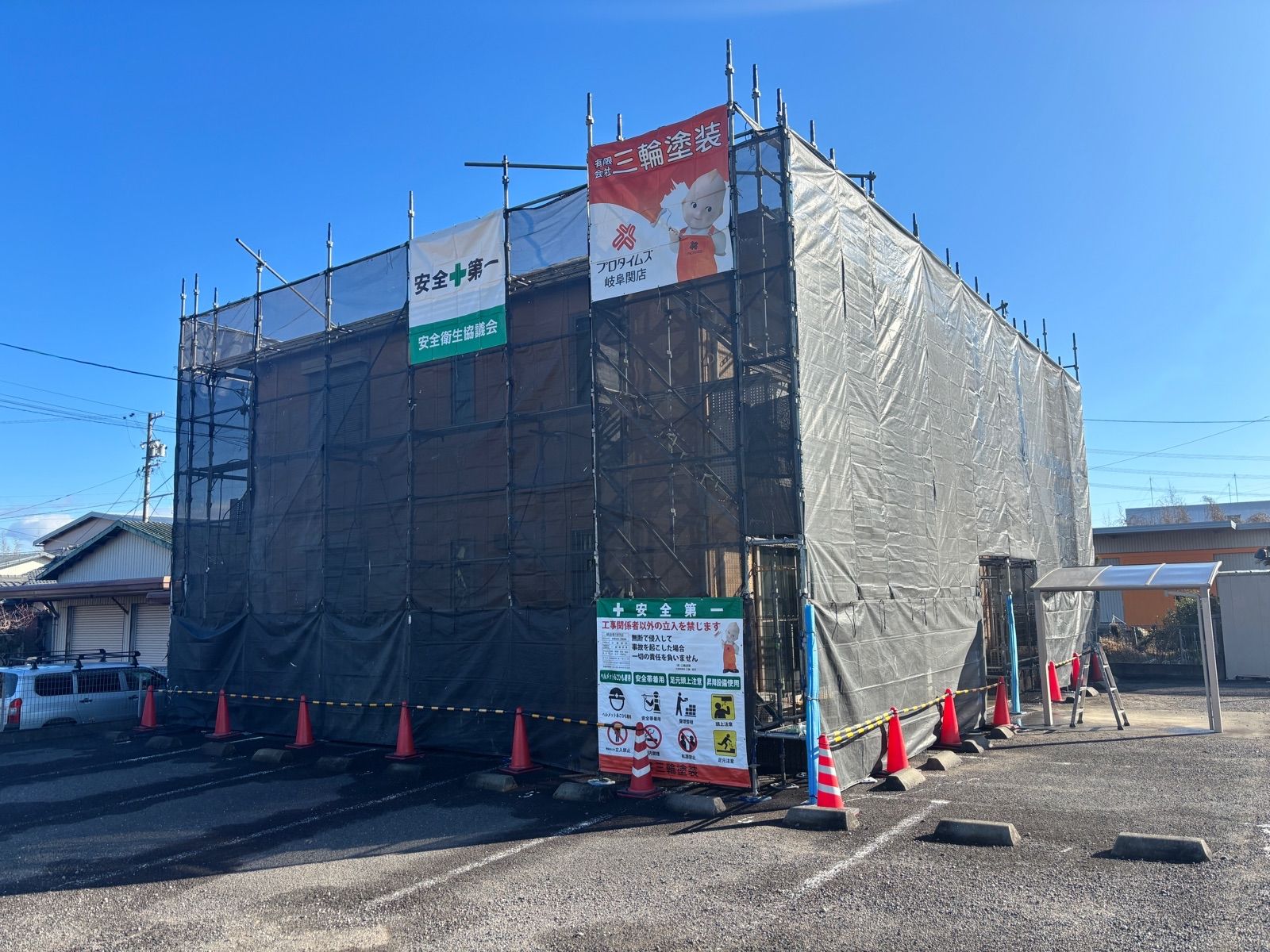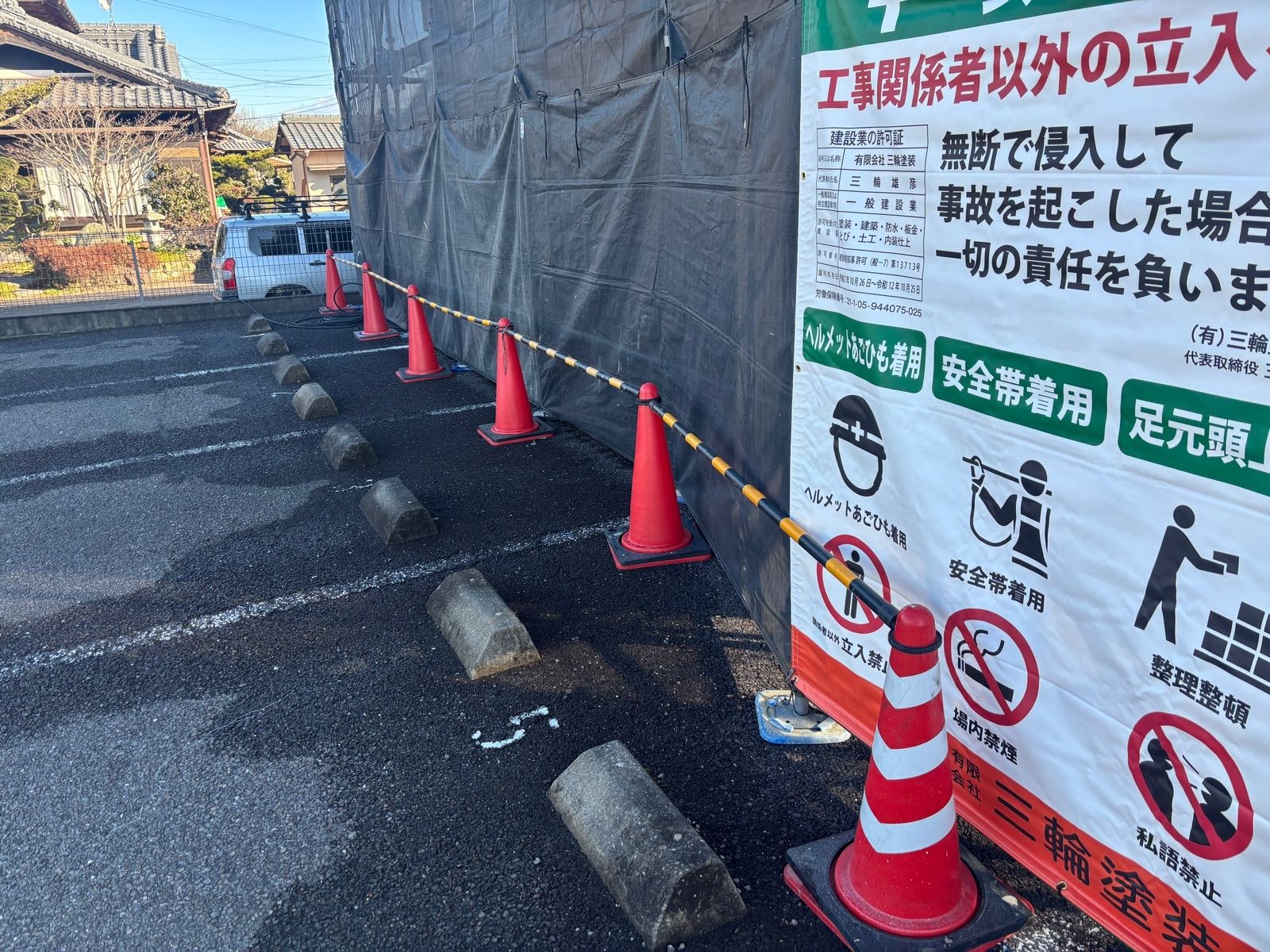 • 外周はカラーコーンで囲い居住者の安全を図ります