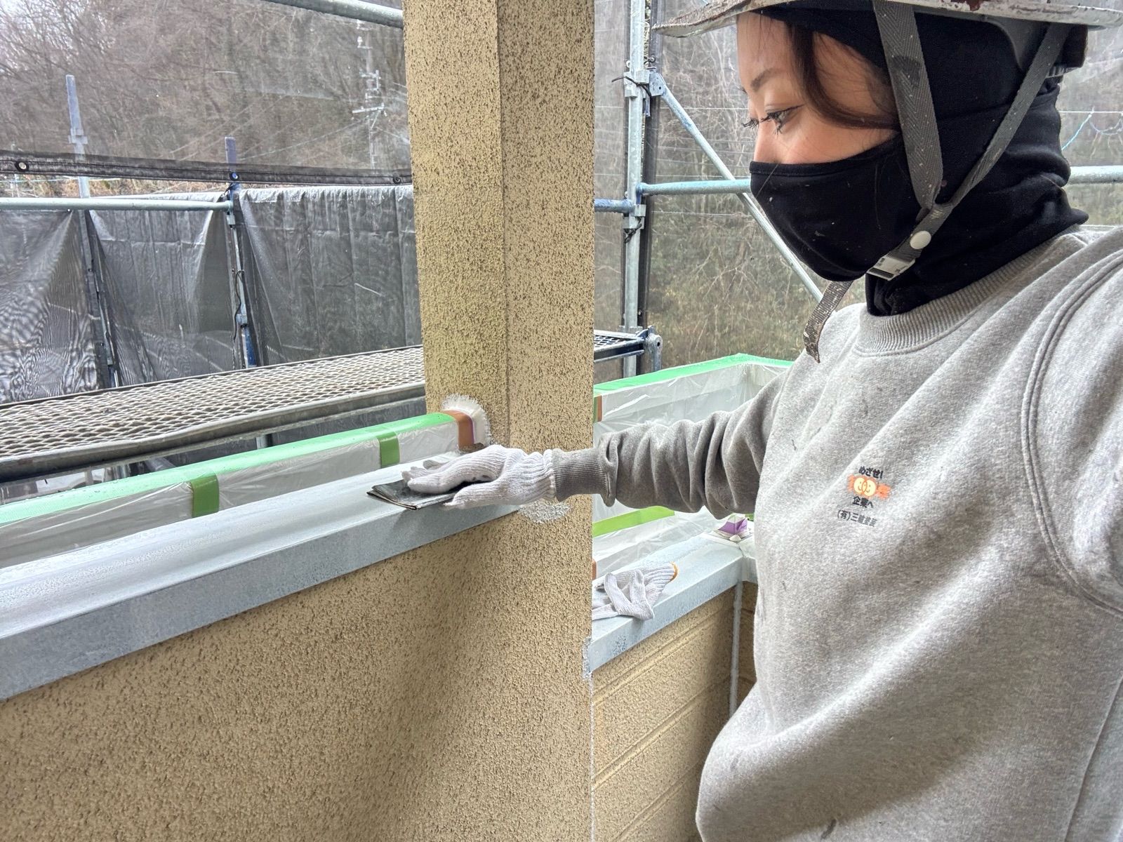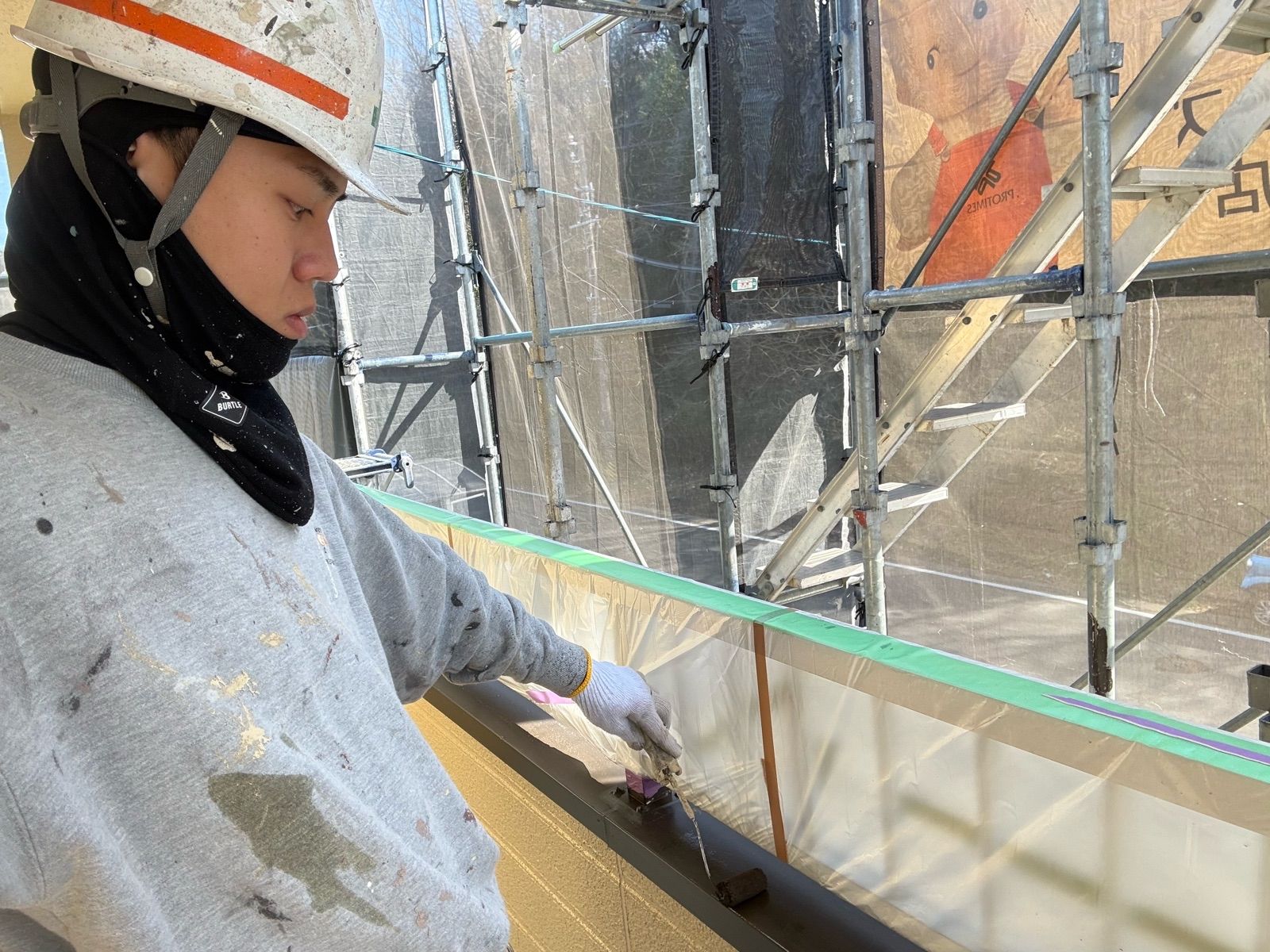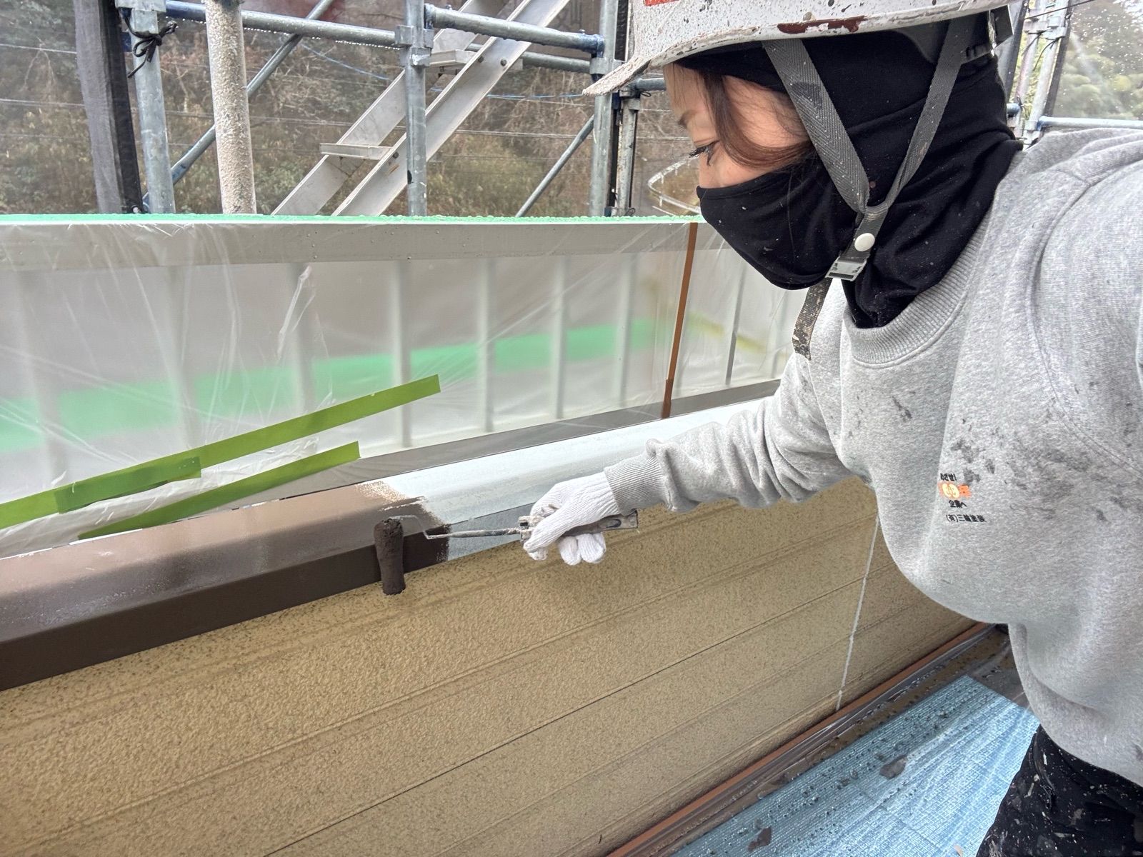• 庇 上塗り1回目作業状況