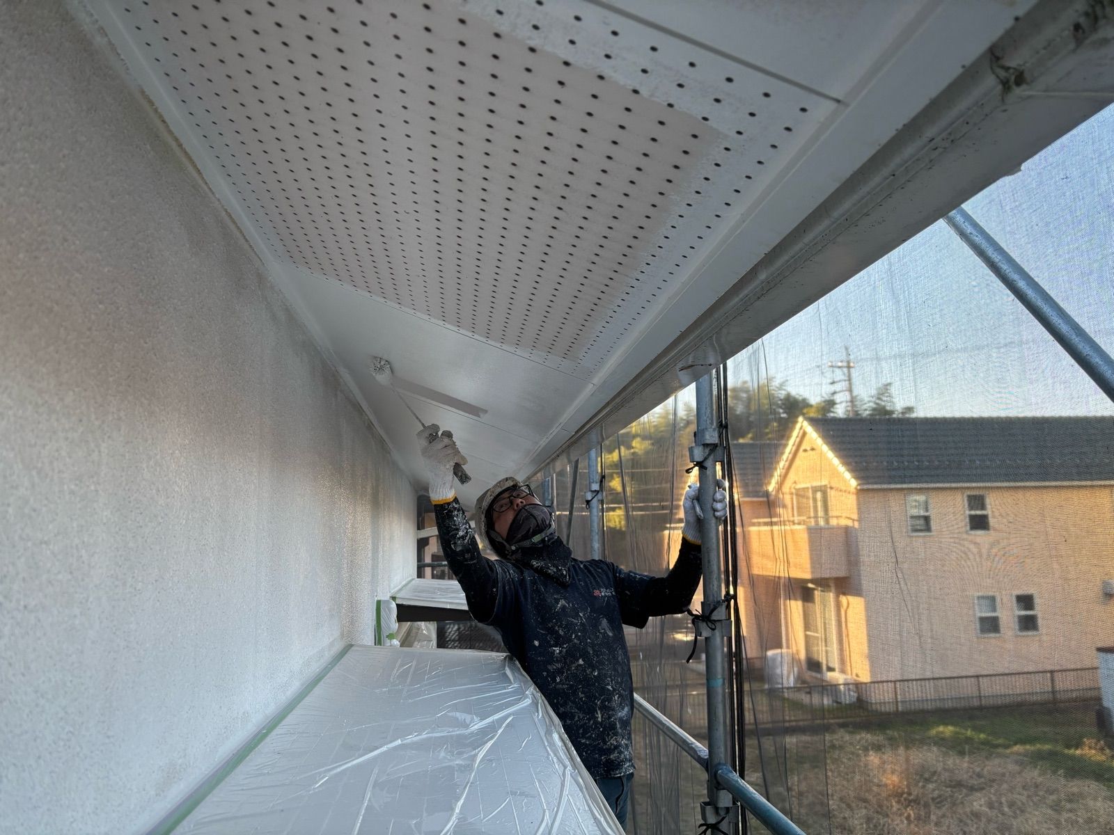 • 軒裏天井 上塗り2回目作業状況